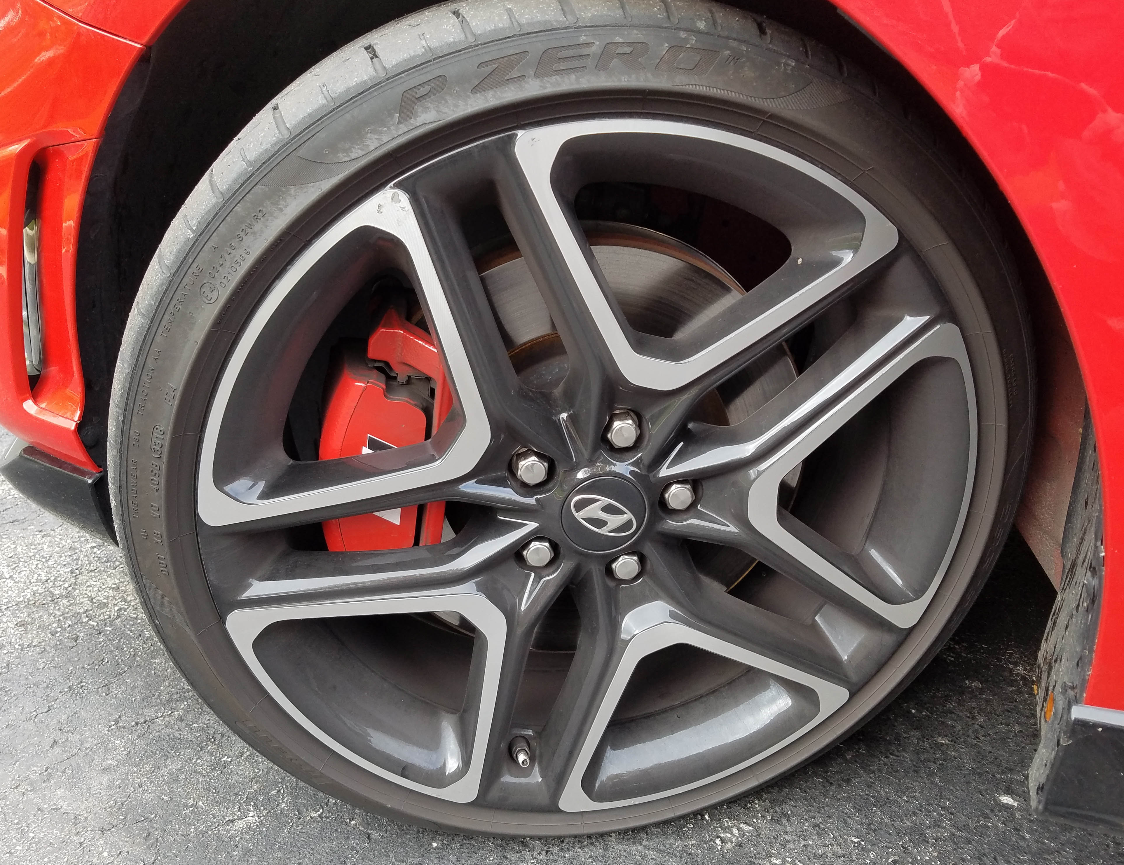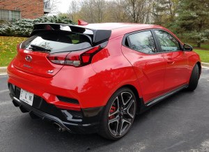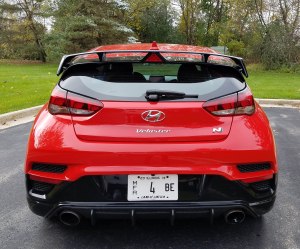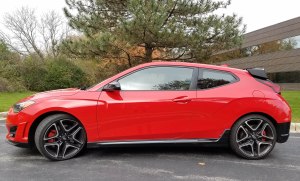 But if you can ignore that, or you have more padding on your derriere than this driver, you’ll have a blast in the Veloster N. The peppy 2.0-liter turbocharged I4 delivers a healthy 250 horsepower and a 260 torque rating. And the test car boosted that 25 horses courtesy of a $2,100 performance package. That package also adds the low-pro performance tires, fancy wheels, variable exhaust valve and special corner carving differential to keep the wheels from spinning and giving better grip.