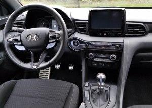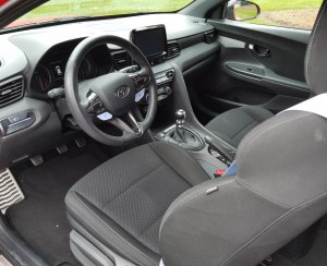 Seats are firm and supportive, more performance oriented for the N than in most small hatchbacks or a standard Veloster. A pump handle on the side allows a driver to raise or lower it to an acceptable height. Being a short driver, I found that a good selling point. All other seat functions also are manual, helping keep the coupe’s weight down.