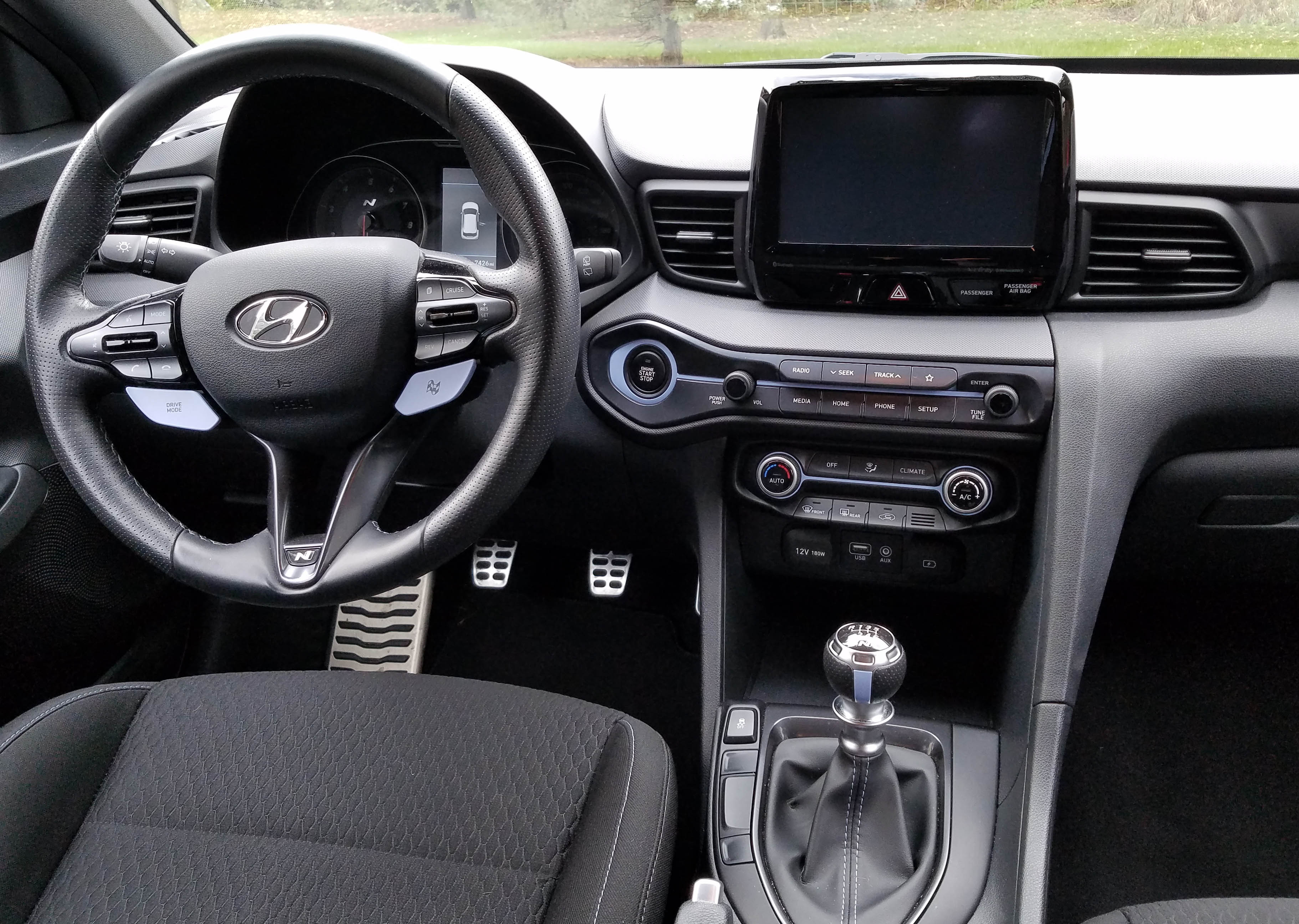 Gas consumption may be a bit more stout than you’d expect in a small hatchback with the N rated at 22 mpg city and 28 mpg highway. I got a disappointing 20.9 mpg in the cold snowy weather. And, this is odd, I needed a jump start the first evening I had the car. Don’t know what happened, but the radio was still playing when I exited the car, so possibly the push button start didn’t fully turn the vehicle off. After the jump it started every time, radio on or off!