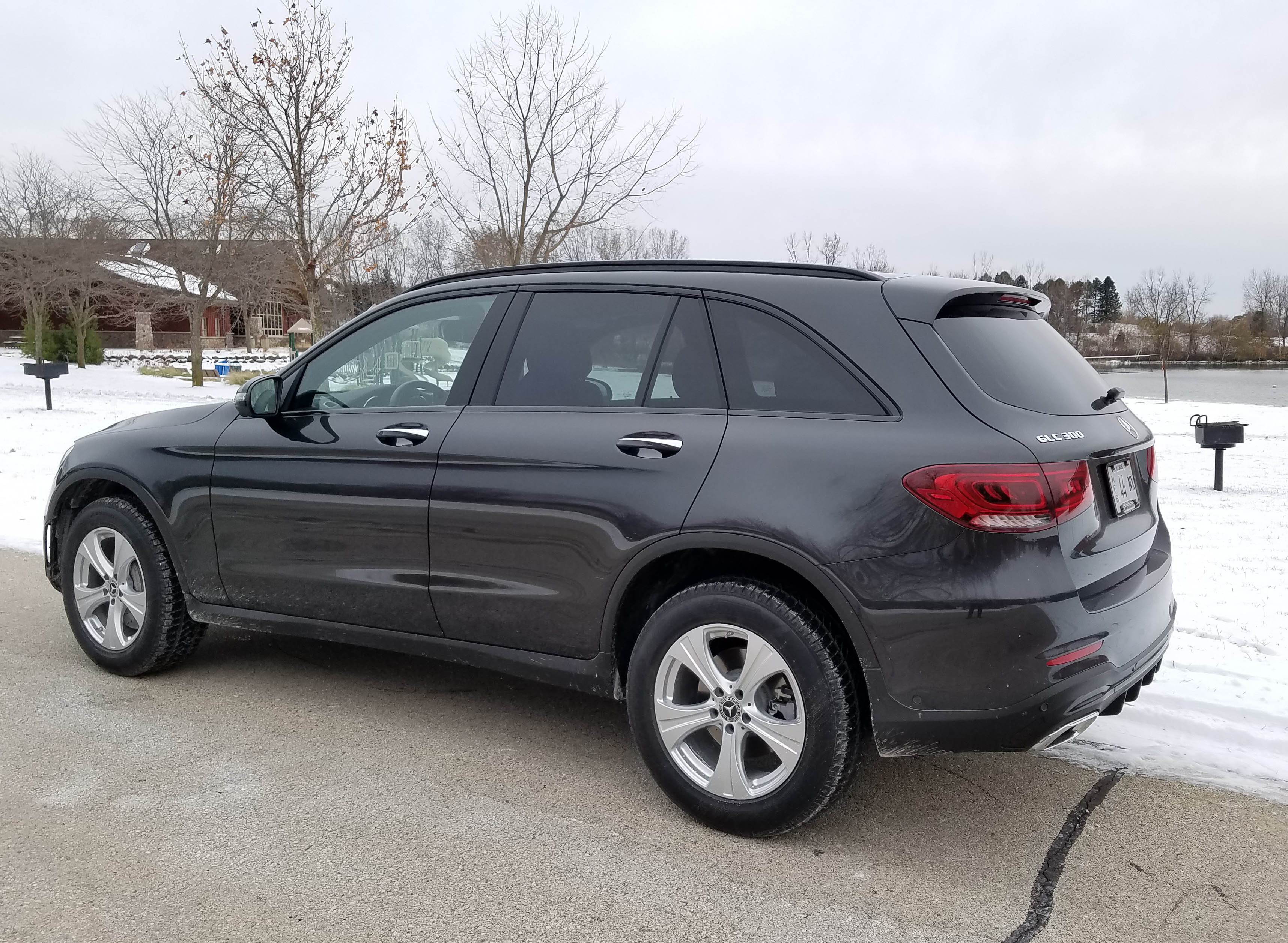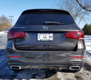 Almost forgot to mention the test crossover came with 4Matic, Mercedes all-wheel-drive system that helped in some slippery weather with wet streets coated in leaves. The GLC feels quite sure-footed. This one added 20-inch tires, up from 18 which is standard. Those were fitted to 20-inch AMG multi-spoke wheels with black accents, adding $750 to the bottom line.