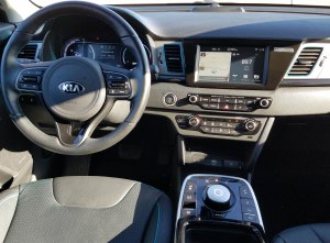 Power comes from a 150kW electric motor that generates 201 horsepower and 291 lb.-ft. of torque. That’s a lot for a car weighing less than 3,900 lbs. Touch the accelerator and the Niro immediately jumps to life, powering away from stoplights while all those gas-powered beasts are struggling up to speed and third gear.