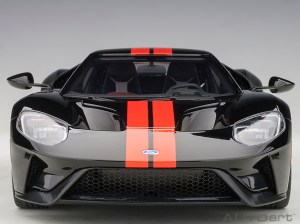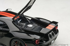While the first was a butt-kicking racer that ruled Le Mans for four years, the latter is a beautiful street-legal remake that only the wealthy can afford. Now Autoart does something about that with its 1/18 scale rendering of the 2017 Ford GT in various paint schemes. Our review car was a snazzy black number with orange racing stripes and interior trim (my high school colors). Cool!
