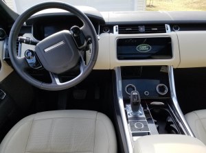 Previously tests were with Rover’s 5.0-liter V8, but this Sport now sports a 3.0-liter turbocharged 6-cylinder engine that makes 355 horsepower and 365 lb.-ft. of torque. That’s a gob and the Sport will gallop up to highway speeds in short course, all the while its smooth 8-speed automatic slipping ever so easily through the gears. There’s enough engine noise inside to let you know you’re the power master, but it’s never intrusive. My, my, no! This is a fine china tea cup and saucer quiet interior.