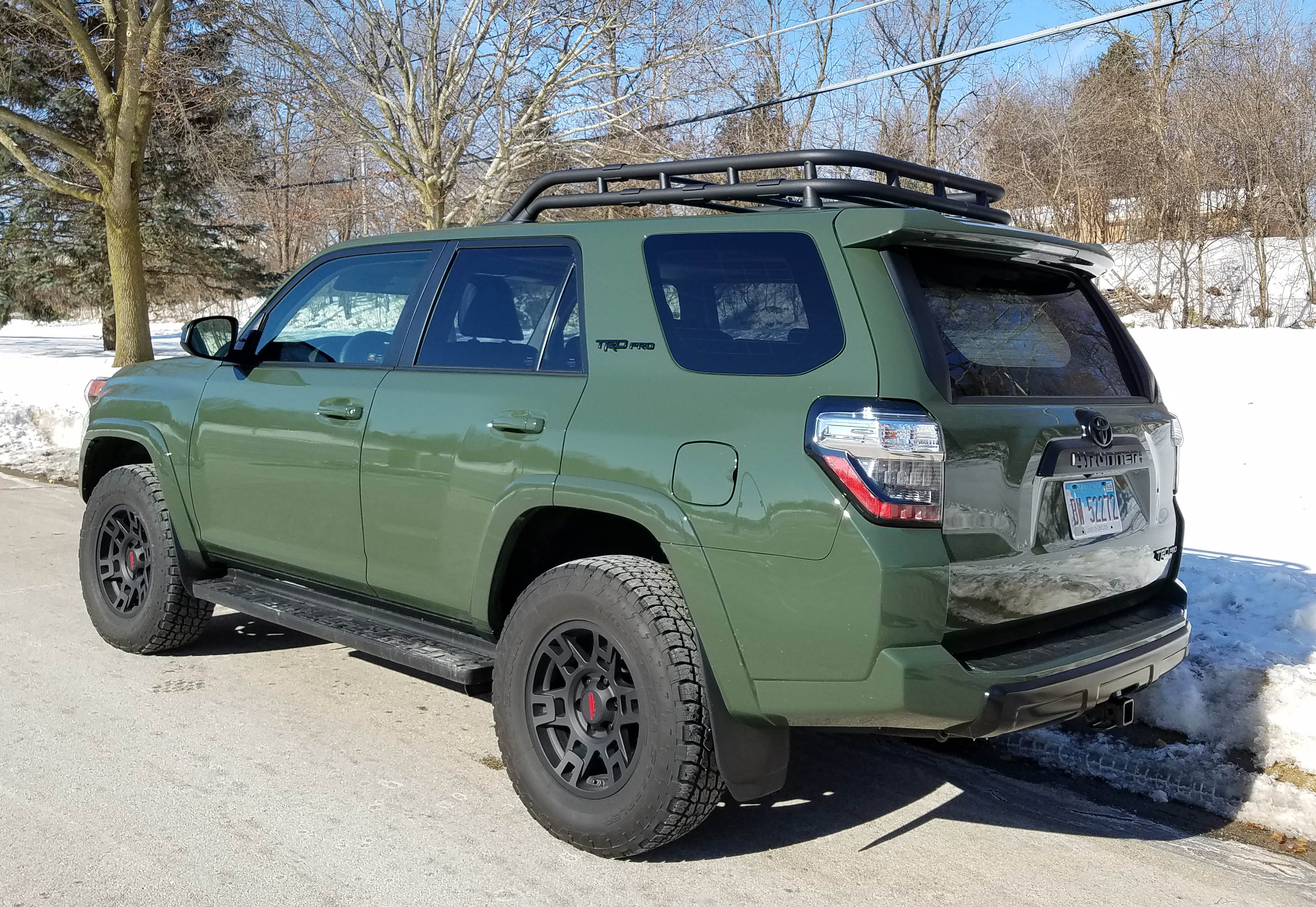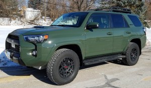 Tall, muscular looking, big tires and wheels, a hood scoop, a husky luggage rack on the roof and an engine that growls along with knobby tires that rumble on the road. Yes, manly and a serious off-roader, made even more so by being the TRD Pro edition.