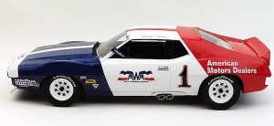 Yet up to this point AMC had not been a big participate in auto racing, and here it was competing in the highly competitive Trans Am series, along with drag racing. This Replicarz model beautifully captures its red, white and blue finish and its shape is well replicated in resin. Note this is a sealed body car, so the hood, doors and trunk lid do not open. But exterior detail is fine, as you’d expect from Replicarz.
