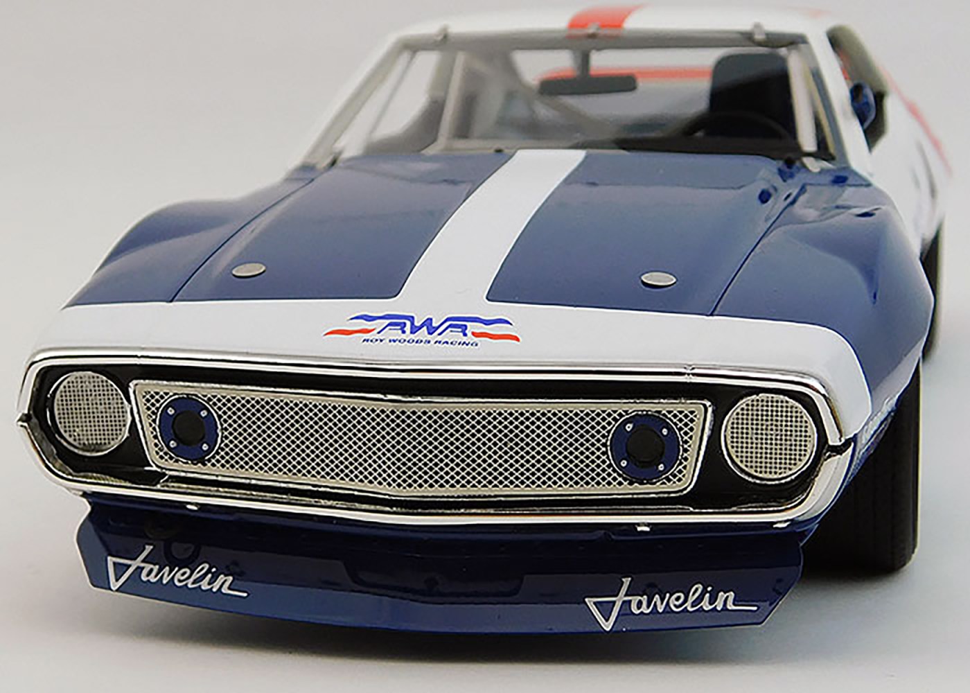 But for 1971 the smooth lines of the original Javelin were lengthened and serious fender bulges appeared over the front wheel wells to give the Javelin a wilder more muscular look that got people’s attention. And Replicarz chooses that model to replicate in 1/18 scale for its exclusive Trans Am model line, mainly because this version was the most successful racer in AMC and Javelin’s history.