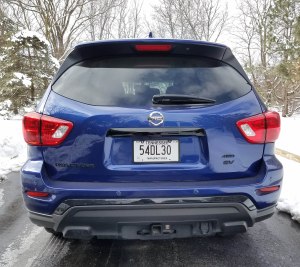 This SV model also included 4-wheel-drive, controlled via a dial on the console. That allows you to improve footing if the weather turns nasty or you wander off road into mud and muck. That system adds $1,690 to any trim level, of which Pathfinder has four, S, SV, SL and Platinum. Traction was good and I had this during one of our rain-turns-to-snow days that really slicks up roads.