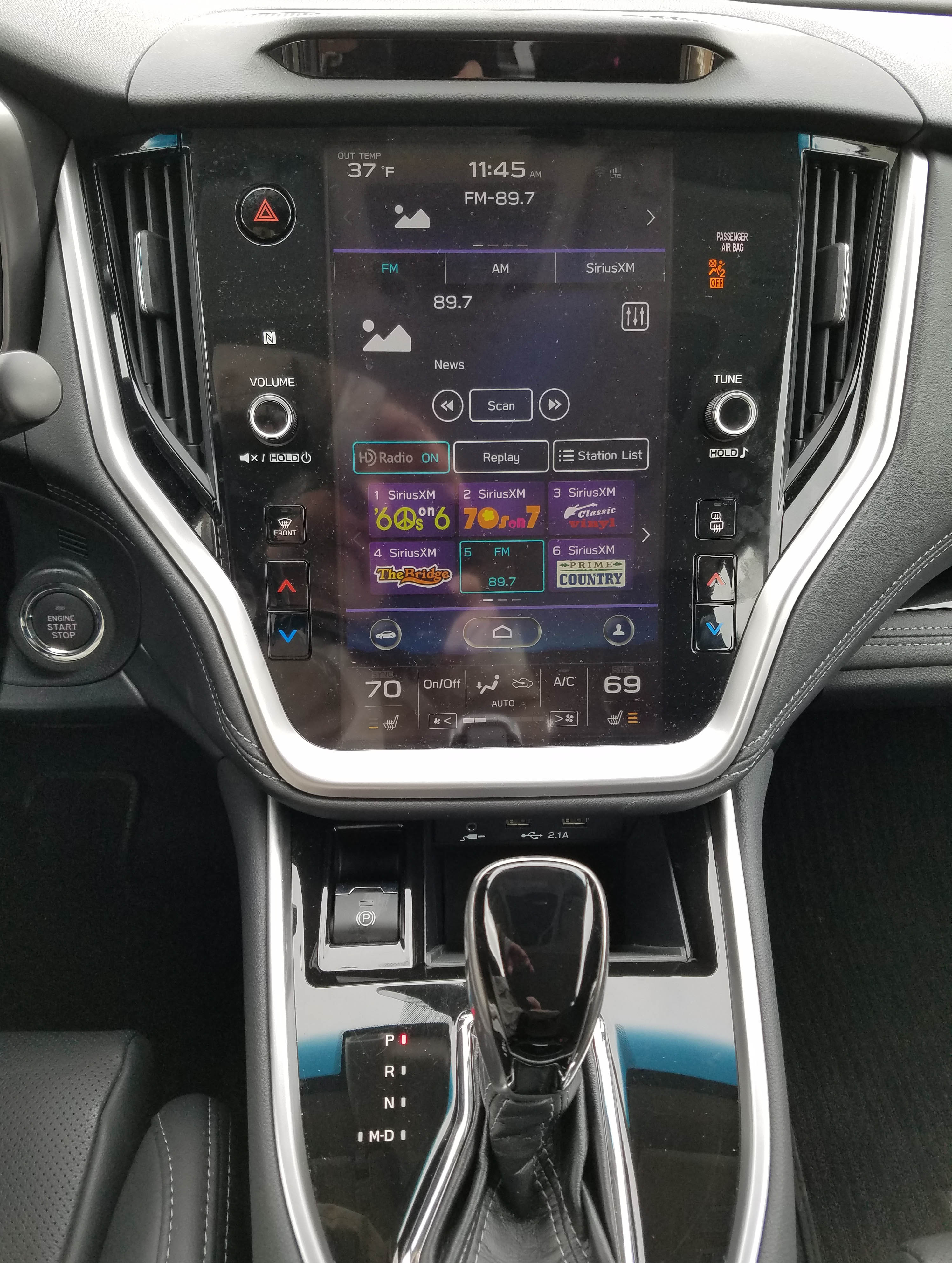 On the plus side Subaru’s seats keep getting more comfortable and these power seats were well shaped and supportive, firm but not hard. Seats also are heated and cooled and the rear seats, which are roomy and comfy, also are heated. Sadly Subaru now controls all this through that monster infotainment screen, so it requires firing up the car, waiting a few seconds for the screen to activate and then pressing the desired buttons. Toggles on the console are much quicker and easier.