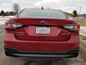 Nope, Legacy continues to look like it was conceived on a drawing board several years ago. Plus the test car, a pretty bright Crimson Red Pearl” pre-production Limited had a few flaws.