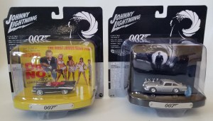 Guess what, Round2’s Johnny Lightning brand is just releasing its first 2020 Silver Screen Machines dioramas and, lucky us, it features cars from two noted James Bond flicks, the original Dr. No, and the newer Skyfall. These feature 1/64 versions of the famous Aston Martin DB5 so synonymous with Bond, and a 1957 Chevy Bel Air convertible that was involved in a Dr. No chase scene.