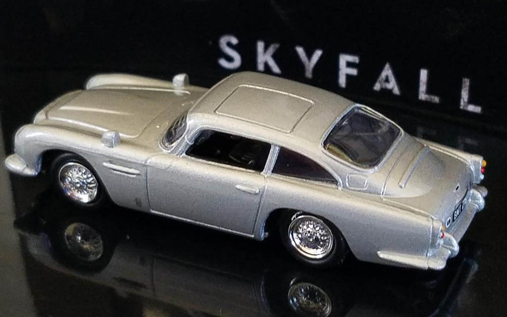 The Skyfall Aston is nicely cast with a detailed grille and mirrors cast into the front fenders. Taillights are red and amber and there are black and white European license plates front and rear. Seams are crisply executed too with the roof panel well delineated where the villains will find themselves flying soon. Likewise the hood and trunk are well outlined, as is a gas filler door, side venting and the bulletproof screen that would rise out of the trunk lid in the movie.