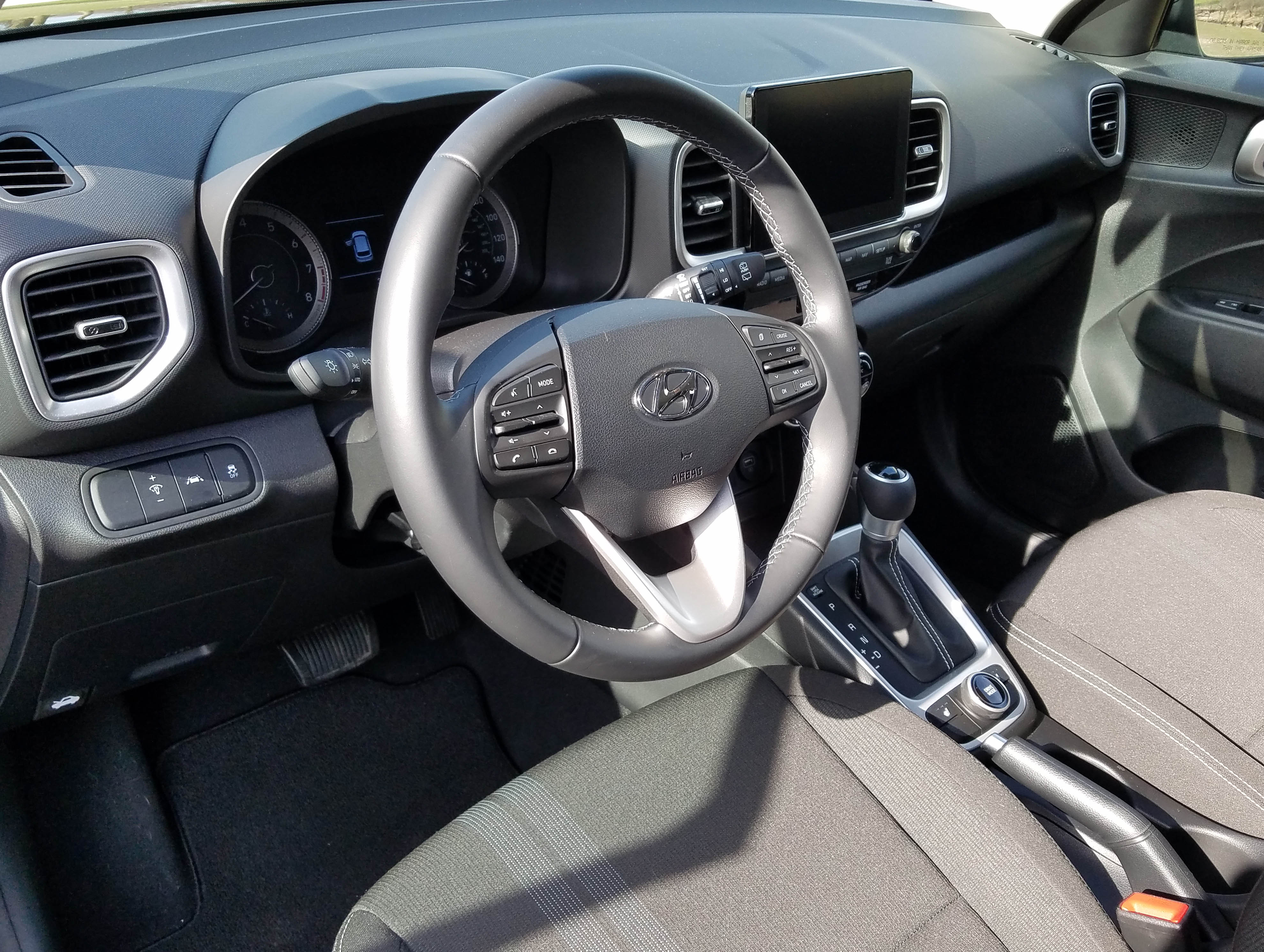 My test vehicle was a handsome black SEL, a mid-level Venue with silver roof rails, gray lower-body cladding and fancy 17-inch alloy wheels that are part of a $1,750 Premium Package. More on that in a bit and don’t let that cost put you off.
