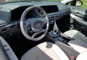 The dash here retains the same fine layout as in the gas-only Sonata, meaning everything is easy to see, reach, understand, and use. Buttons are large enough to press with a gloved hand and the wide infotainment screen can be used while driving. It’s a bit futzy to tune to the next radio station up the dial, but once you learn the system it’s not a deal breaker.
