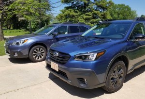 Handling remains nimble in Outback with moderate steering weight, plus that stiffness seems to also have helped the ride, moving it from 6.5 on a scale of 10 up to 7.5 or 8, depending on the sensitivity of your tushie. All in all the Subaru is a pleasant city or highway cruiser and useful because of the cargo room in back. That ranges from 32.5 cubic feet to 75.7 with the split rear seats down. The XT includes a power hatch too.