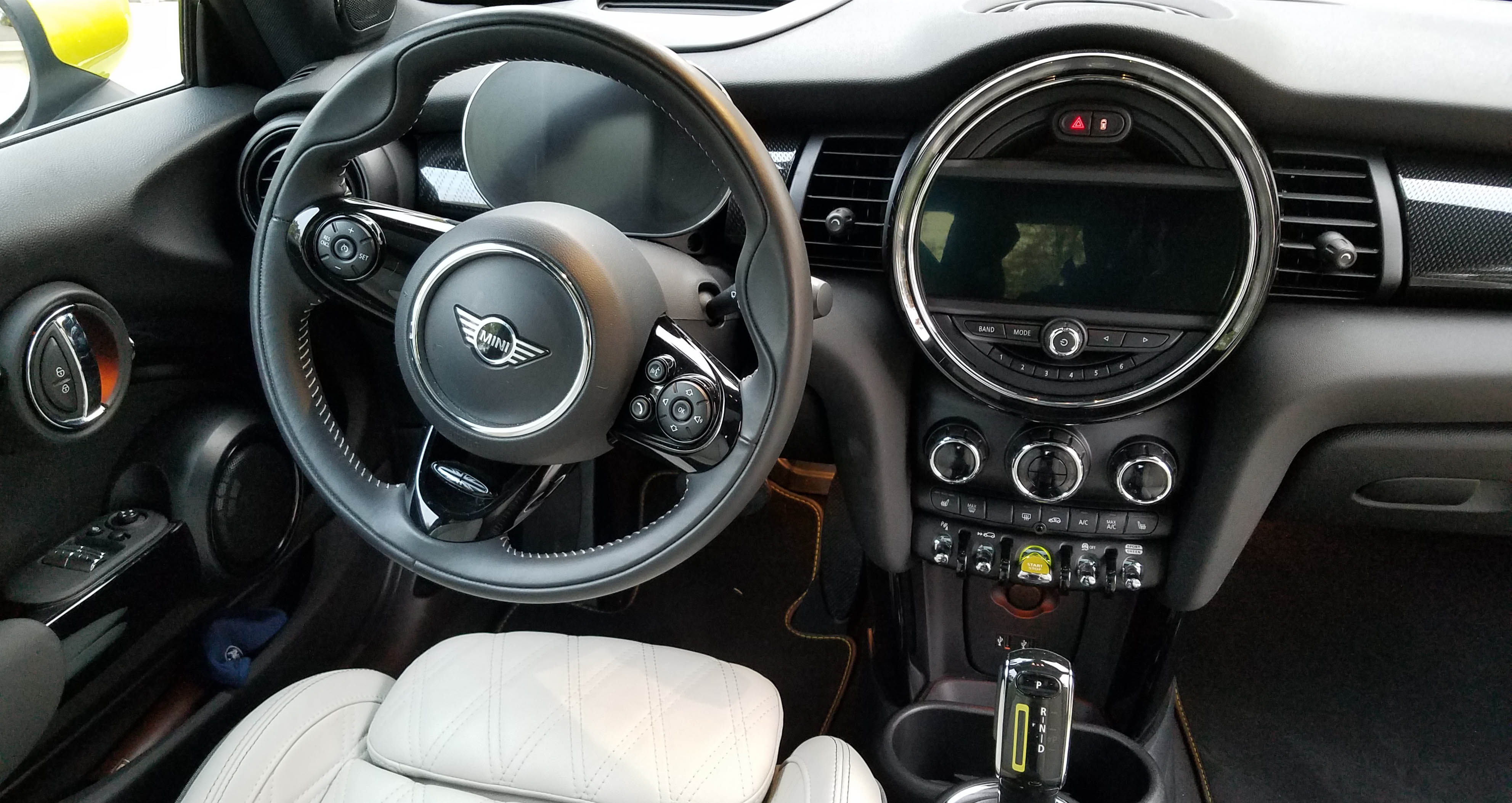 Bravo that there’s a side sun visor for the driver, but if he or she is short and has the seat fairly far forward that visor jams against the headrest as it’s being lowered. You can force it, or further recline the seat to deploy it, but that’s clunky. Also, with limited space in a tiny car the sporty MINI deserves a D-shaped (flat-bottomed) steering wheel to allow easier ins and outs for the driver.