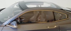 Styling makes this a rare beauty, but its blue-gray paint scheme is flawless and looks as great on the model as the 1/1 car, or a Polestar 1. Photo-etched parts create fine detail here with chrome edging around the side window opening, , the roofline front to rear, gorgeous door handles and an awesome grille (a bit Buick-like IMHO) with large Volvo logo.