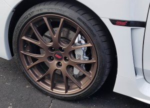 Another plus is braking power. Subaru uses large Brembo discs front and rear. These are STI branded though with silver calipers, not red. Stopping power is impressive.