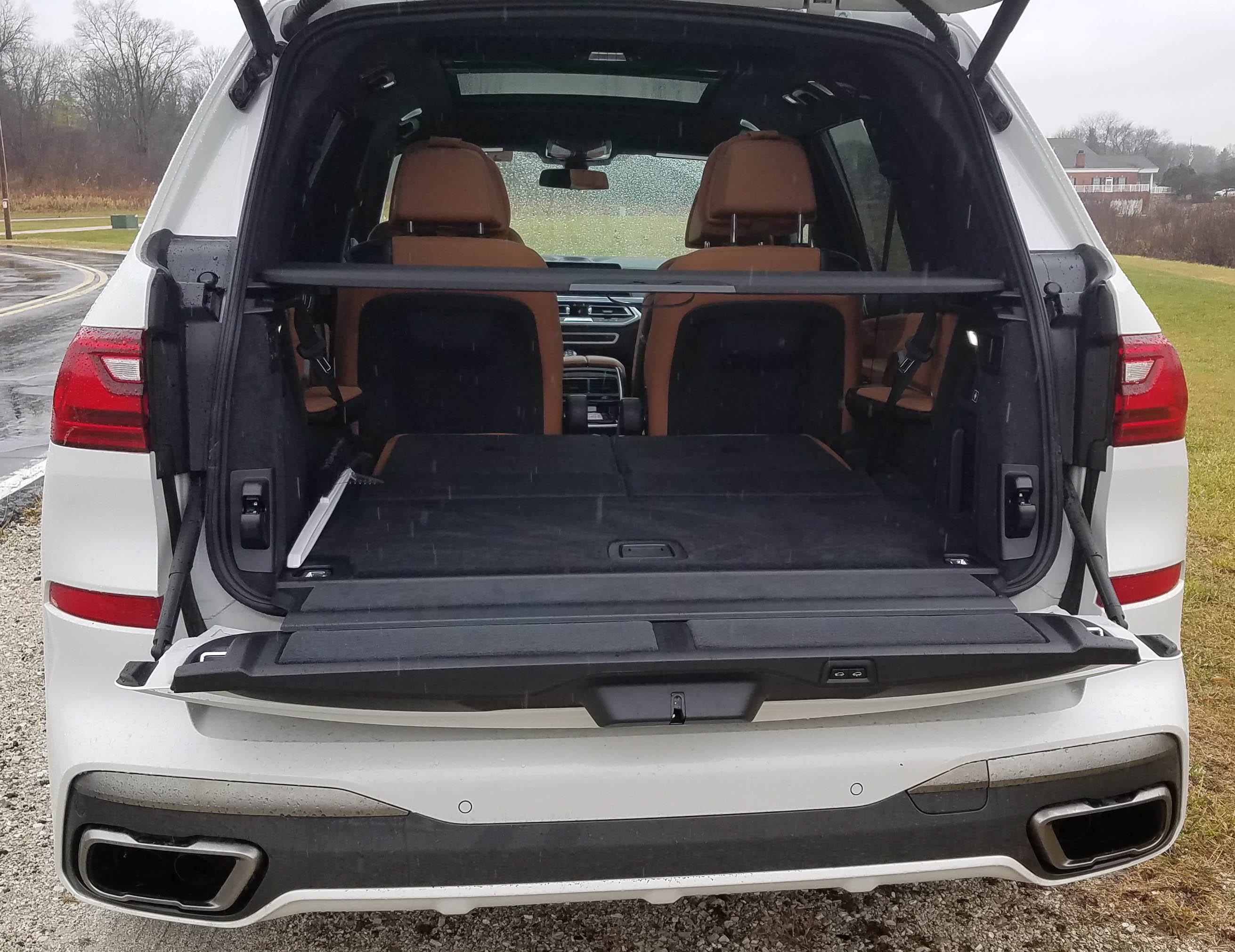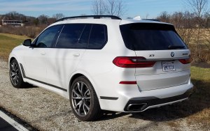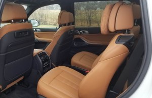 Gas mileage is poor too, as you’d expect in such a hefty SUV. I got 16.7 mpg in about 70% highway driving while the EPA says to expect 15 mpg city and 21 highway. Also note that the A- and B-pillars are big in the X7, so can crimp sight lines, which makes that 360-degree camera vital, especially when backing.