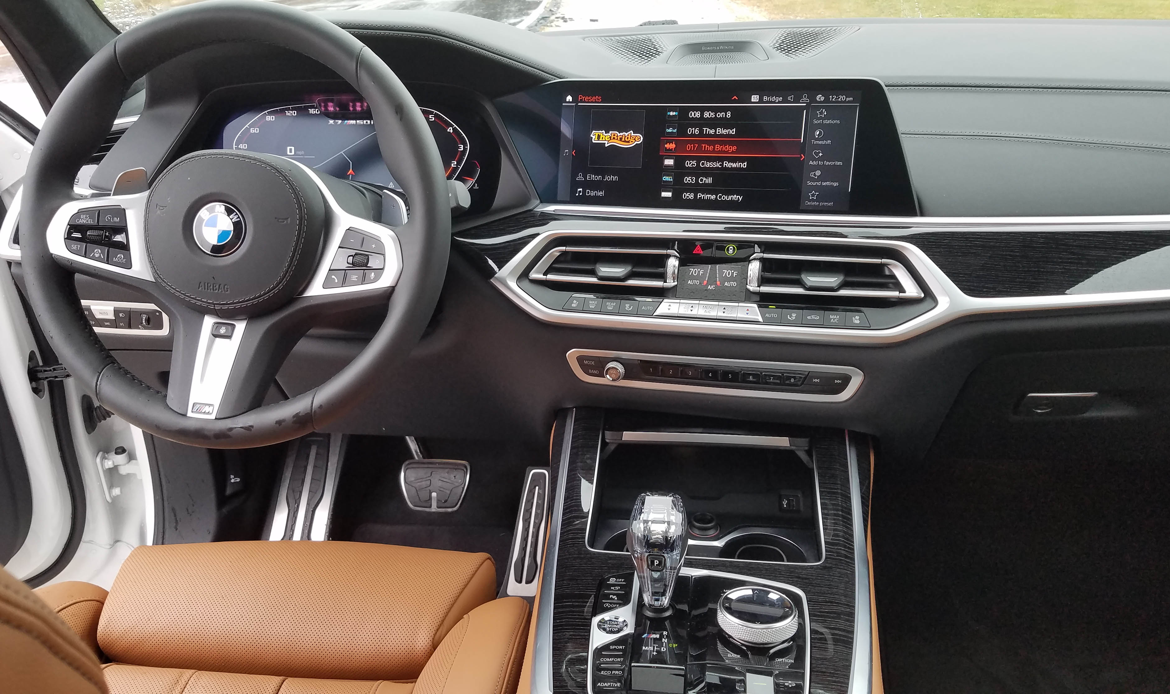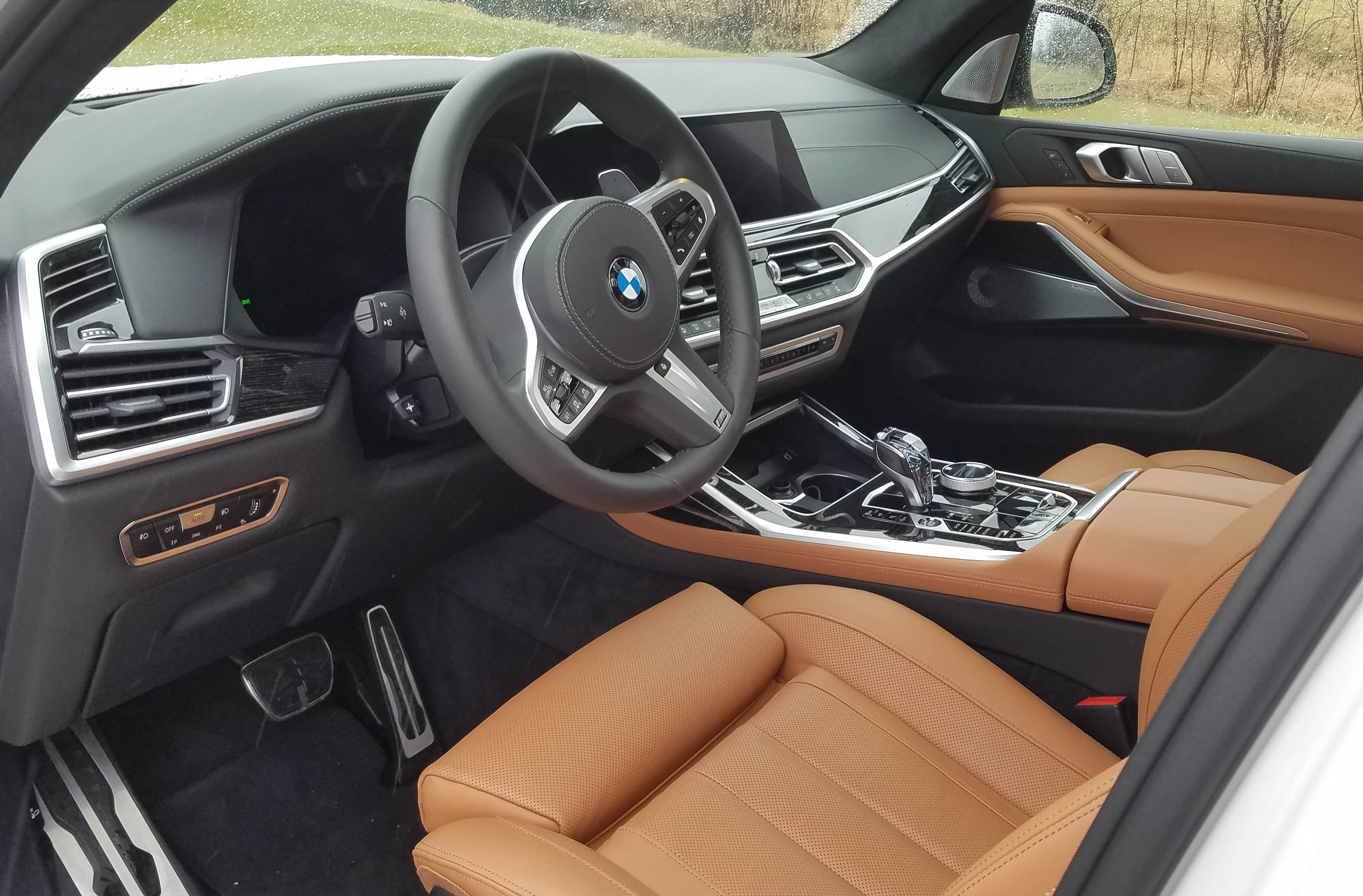 Big vehicle, big infotainment screen. This one is 12.3-inches of high-def that seems even wider. Adjustments were by smallish buttons and the iDrive knob on the console, which has finally become more usable, plus BMW got smart and put eight buttons on the dash for radio programming. Finally!