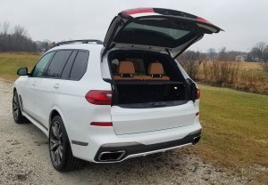 While price is prohibitive for most of us, the X7 really is quite practical from a functional standpoint, yet there are a few drawbacks that I’d be remiss not to mention. First, the tailgate is split, so the top powers up and leaves you a small lift-over to put groceries, etc., in back. That’s not a huge problem, but if you want a wide-open tailgate to load a large item, you must press another button on the lower tailgate to power it down. Then, press it again to raise that before you use the upper tailgate button on the giant fob to lower the hatch. A one-piece hatch would simplify all that.
