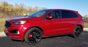 Well, the big difference anyone would notice is power. The ST adds a 2.7-liter twin-turbo V6 with 335 horses and a jolt of torque rated at 380 lb.-ft. That’s up from the 250 horses from the fine 2.0-liter turbo 4-cylinder in lower line Edge models.