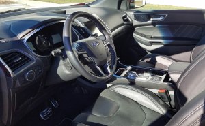 As noticeable as the power though is its artificially heavy feeling steering effort. Yet that firmer wheel provides more precise steering that increases the driving pleasure on winding roads where there’s some back and forth action getting into and out of curves. Plus the ST remains stable and easy to control. Prefer lighter steering? Stick with one of Edge’s other three trims.
