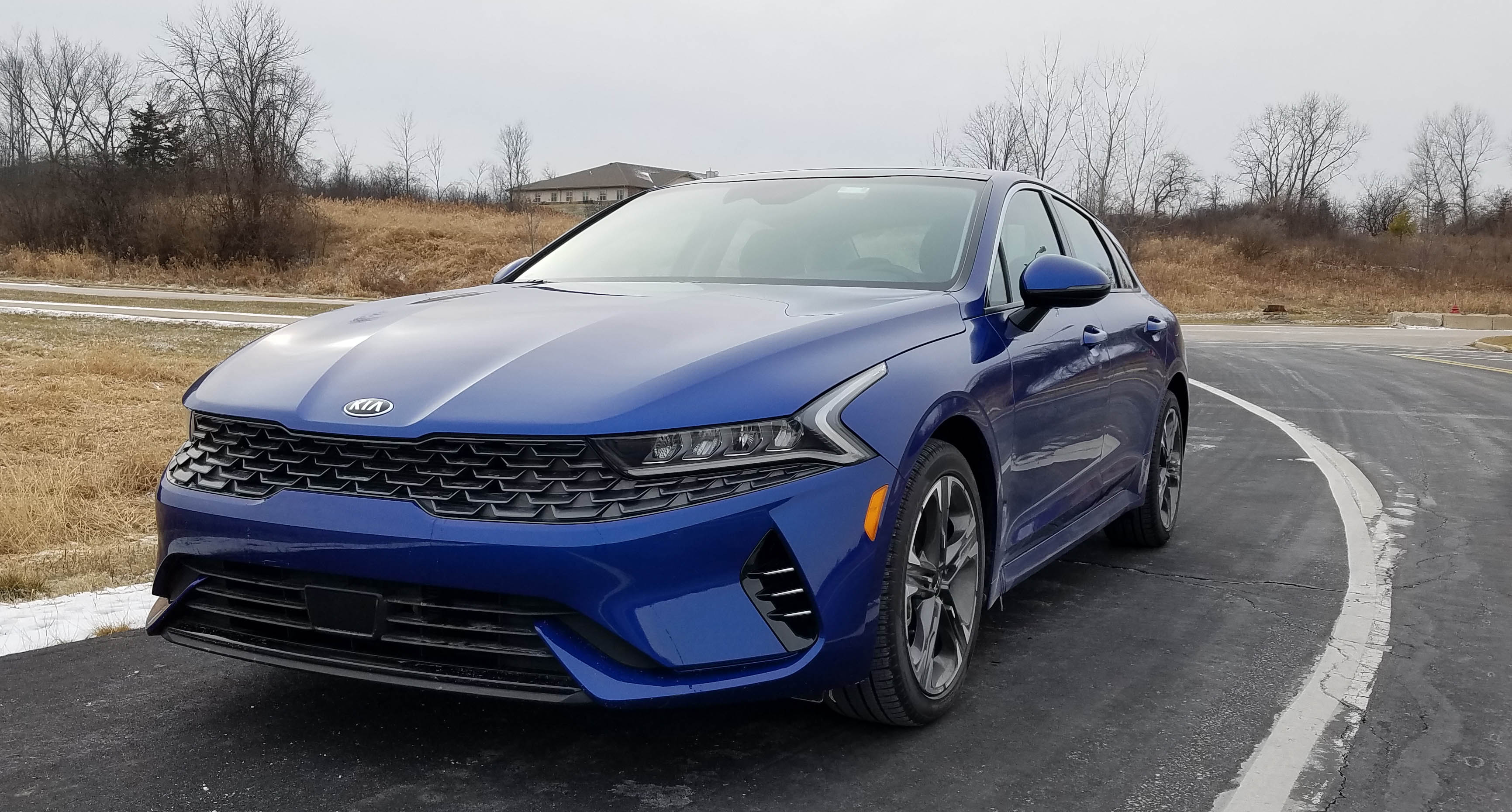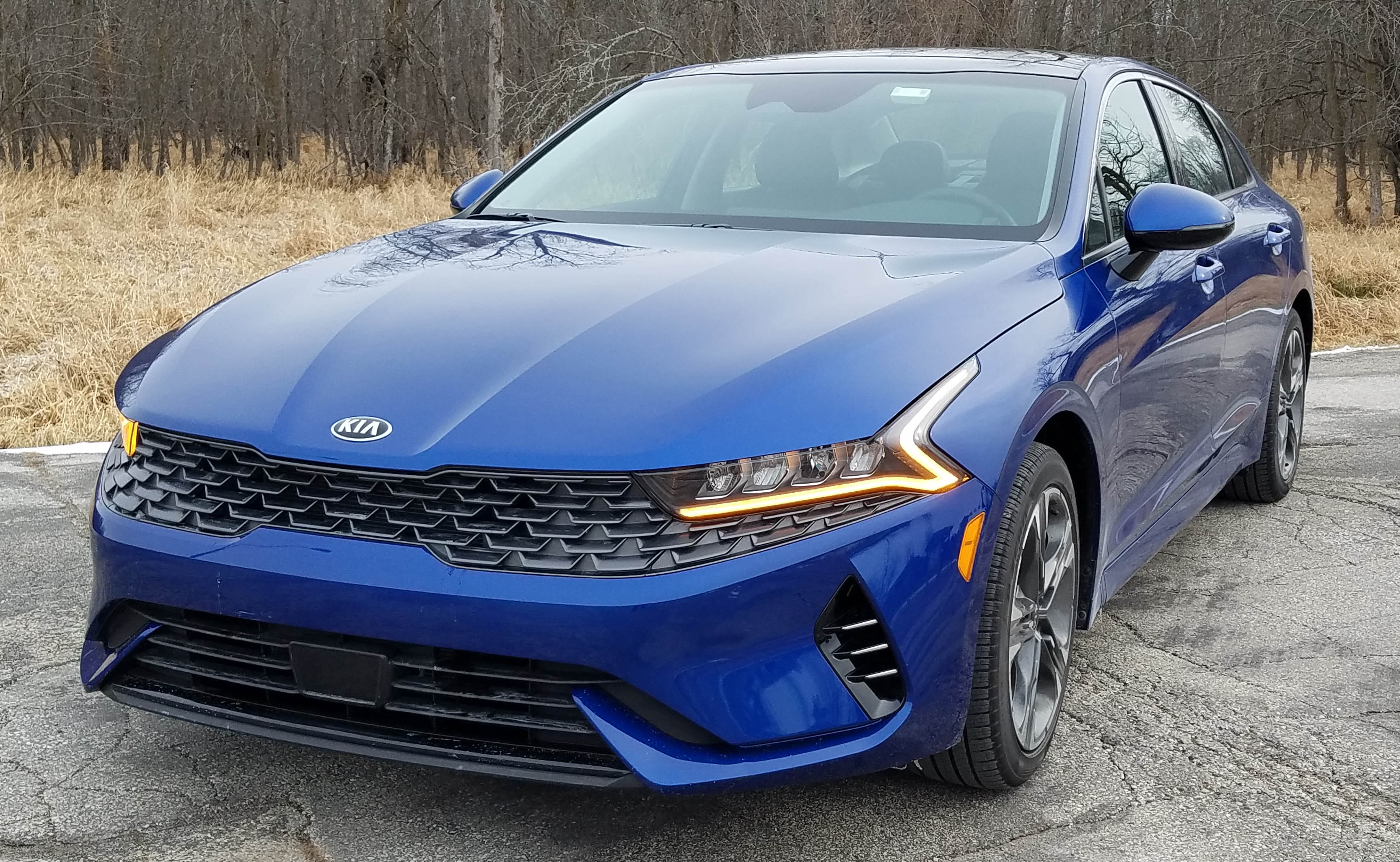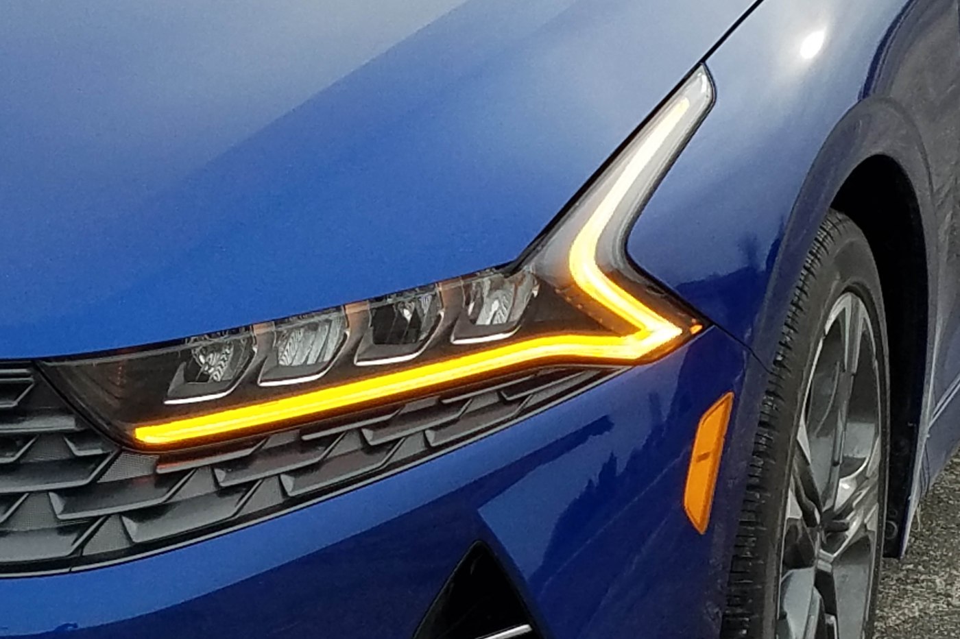 The tested Sapphire Blue (gorgeous) test car was the next to top-level front-drive EX trim, but know that Kia now offers AWD (about $2,000 extra) on all but the base K5. The sedan now rides on a new chassis that’s longer, wider, and lower than the Optima it replaces. In the old days, that’s the sort of thing Pontiac boasted about.