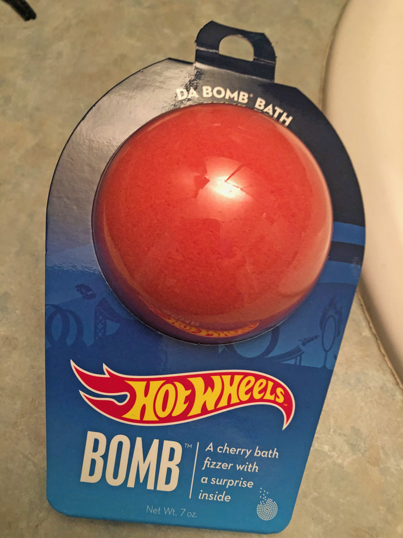 I love taking what I call a “swirly”. Don’t read anything special into that word, it’s just warm water, jets, and something to make my skin feel silky smooth. It really relaxes me. Recently, I found a way to combine water jets and cars. For my birthday, my wife and daughter gave me a couple of Hot Wheels™ Da Bomb Bath Fizzers.