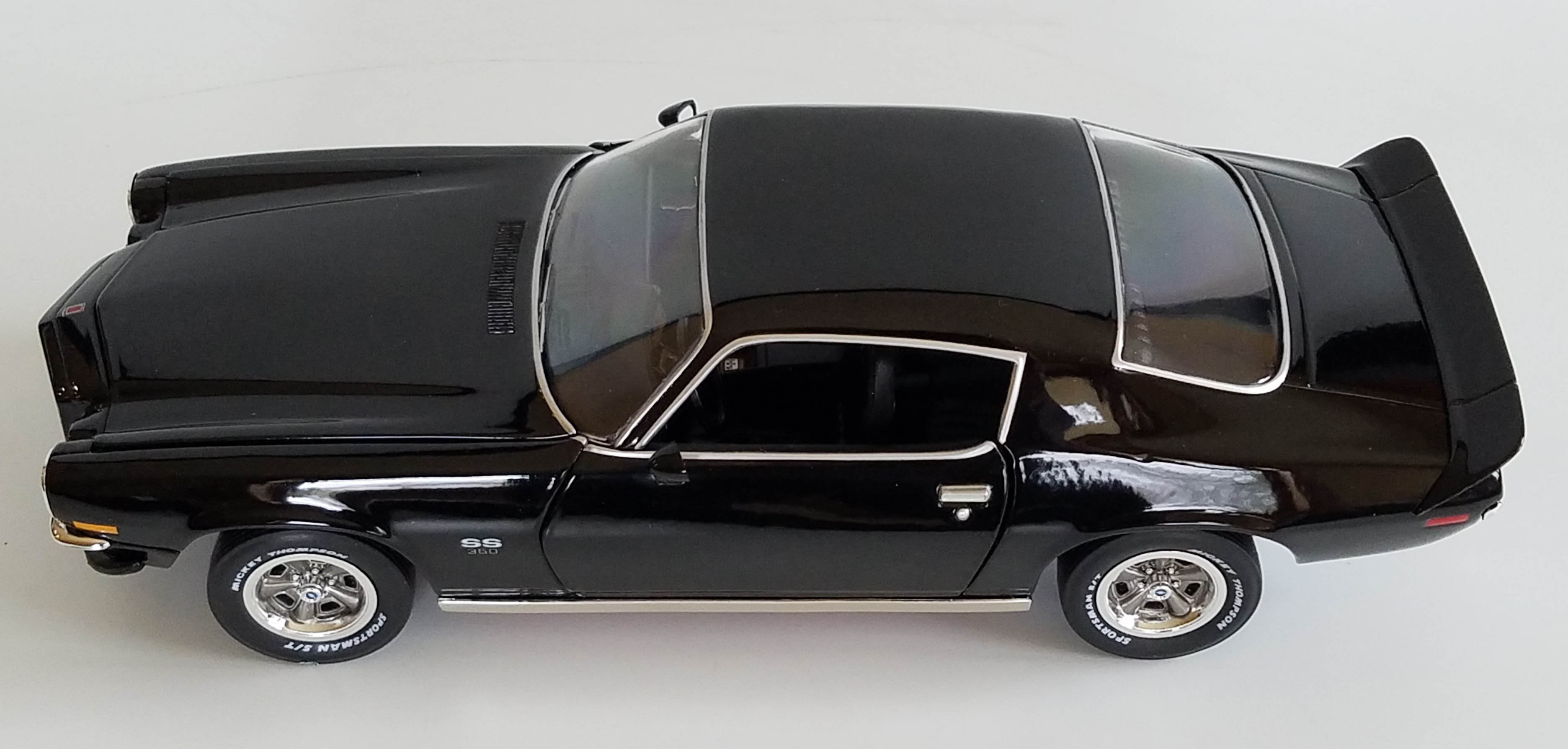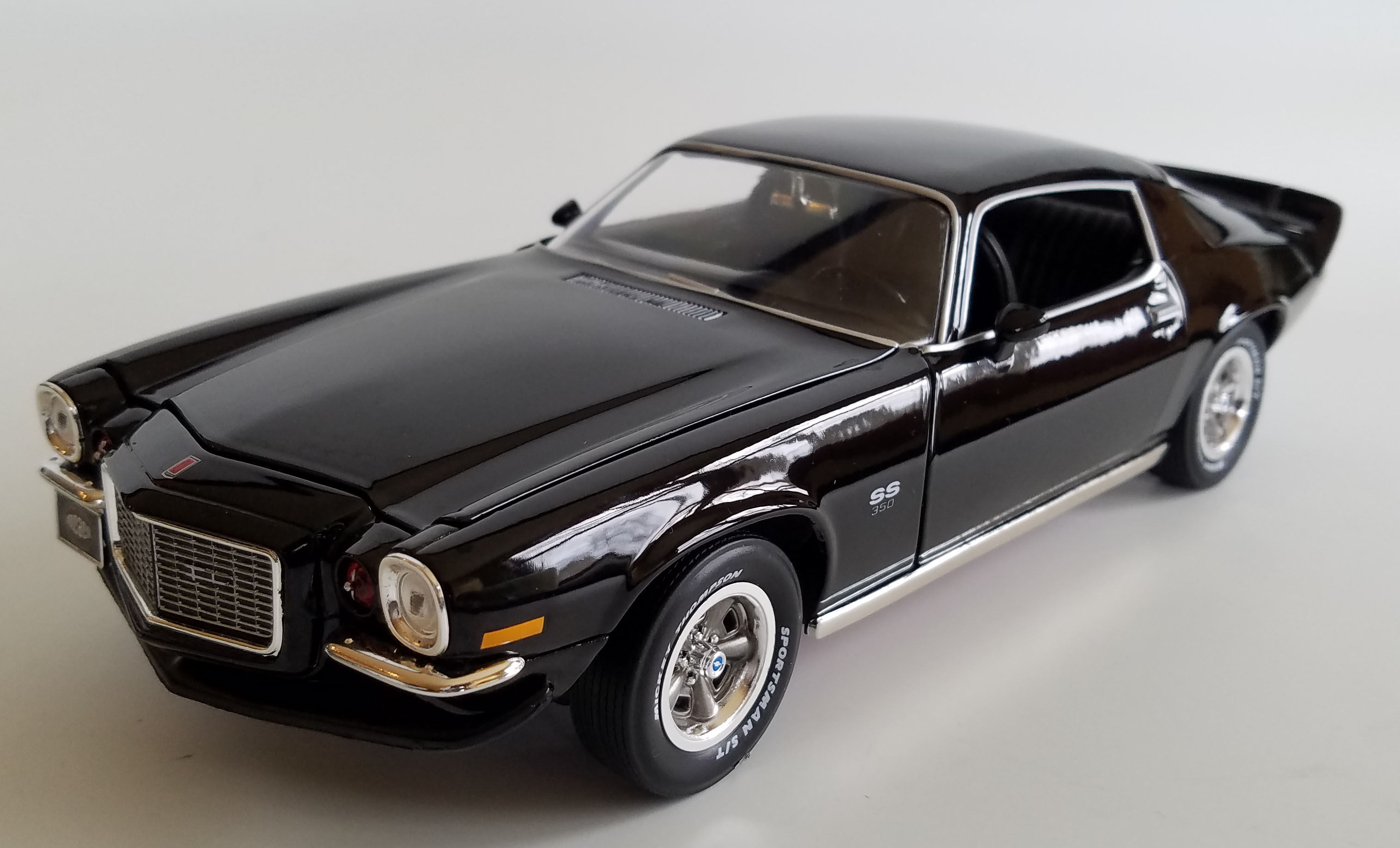 Front bumperettes and rear bumpers are chrome as are the headlight bezels and snazzy grille. Headlights and taillights look realistic plus I really like the small round red parking lights that give this Camaro’s nose some personality, along with the spoiler and split bumper.