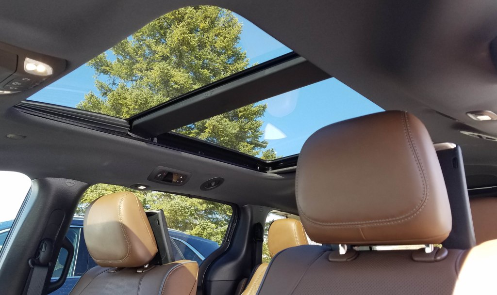 As for interior amenities, well, there are side window sun shades for the second and third rows, a dual-pane panoramic sunroof with power sun shade, and a wireless phone charger in the front of the console, making it easy to access.