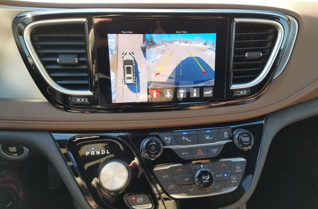 In reality, the van is a super easy and smooth drive all around. There’s plenty of power for acceleration as electric power is instantaneous and steering is fairly light and breezy too. There’s a bit of play in the wheel, but no family is expecting sports sedan handling in their minivan. Nope, but Pacifica is easy to turn into a parking spot, or back out. Of course there’s a 3D rearview camera and parking sensors too.