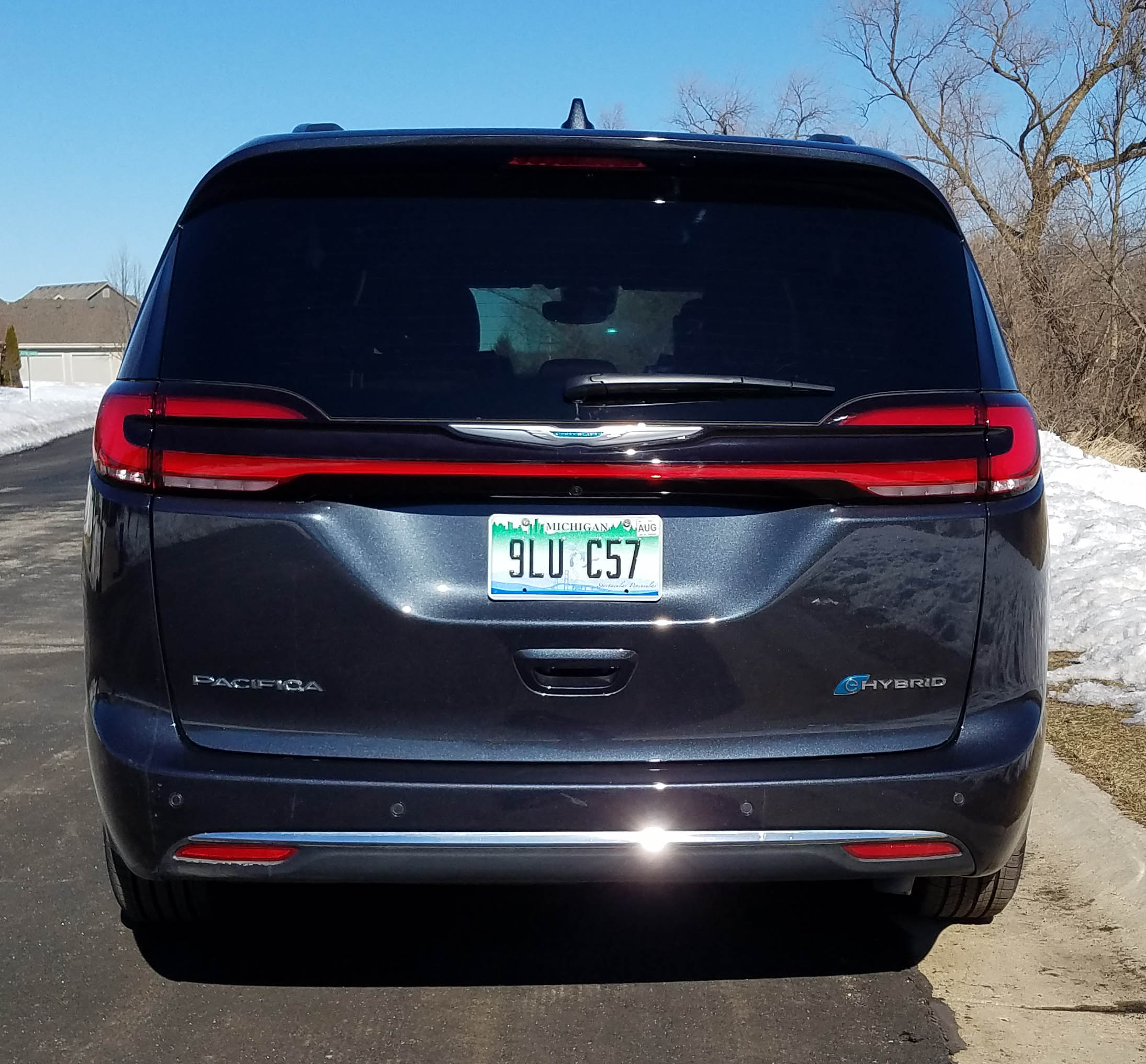 Oh, the Pacifica is quiet for sure operating at low speeds on electricity generated by regenerative braking, plus it also will run for 30+ miles solely on electric if you charge it fully. That takes about 14 hours on a home’s 120-volt line, but I got a 70% charge in about 6 hours once. If you have a 240-volt line a full charge takes just two hours. Bingo!