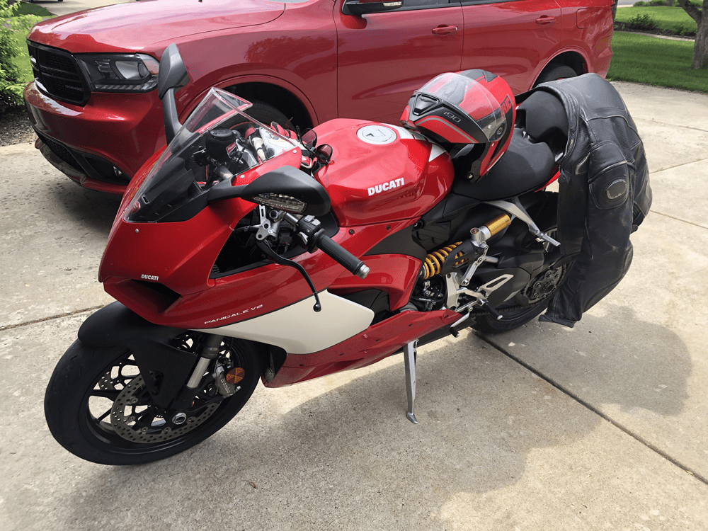 My 07 Hayabusa was starting to cost me money and I was looking for it’s replacement. Not wanting to buy one from the local Suzuki dealer who’s service reputation had gotten sketchy, I looked at other brand, one I had lusted after for a very long time, Ducati. What I purchased was the first bike I saw when I entered the dealership, this 2019 959 Panigali. I think it was the color that caught my eye. Totally different than the Busa but even more fun.