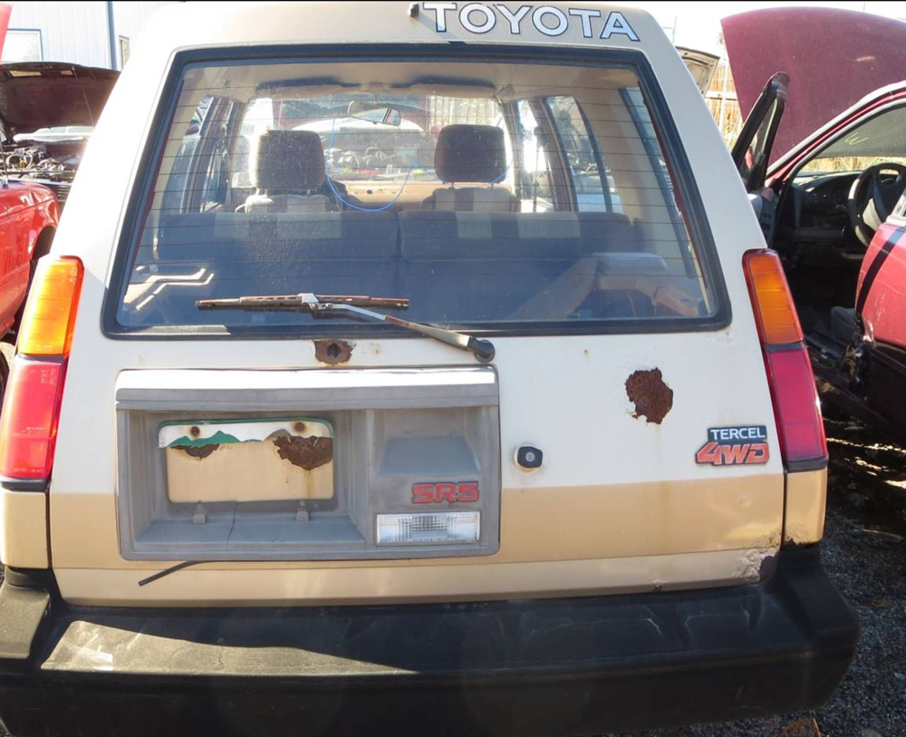 The piece of shit that pulled out in front of me was a Toyota Tercel 4-wd sr5 wagon turd brown like this one. The Toyota logo got real big in my visor just before impact. I remember the horizon rotating three times before I came to rest on the pavement. The driver of the Turdcell had pulled way over to the right after impact. I remember laying on my back, mostly there, when the passenger got out and asked why I ran into them. Adrenaline was really pumping and I lifted my head up to respond, what the f…. are you talking about, you turned into me. I was hot. Apparently not getting my message, she asked me again and I responded the same. Then I decided to just lay down and let the paramedics and police take care of things. Witnesses confirmed that the car had indeed pulled in front of me and I flew over the car three times.