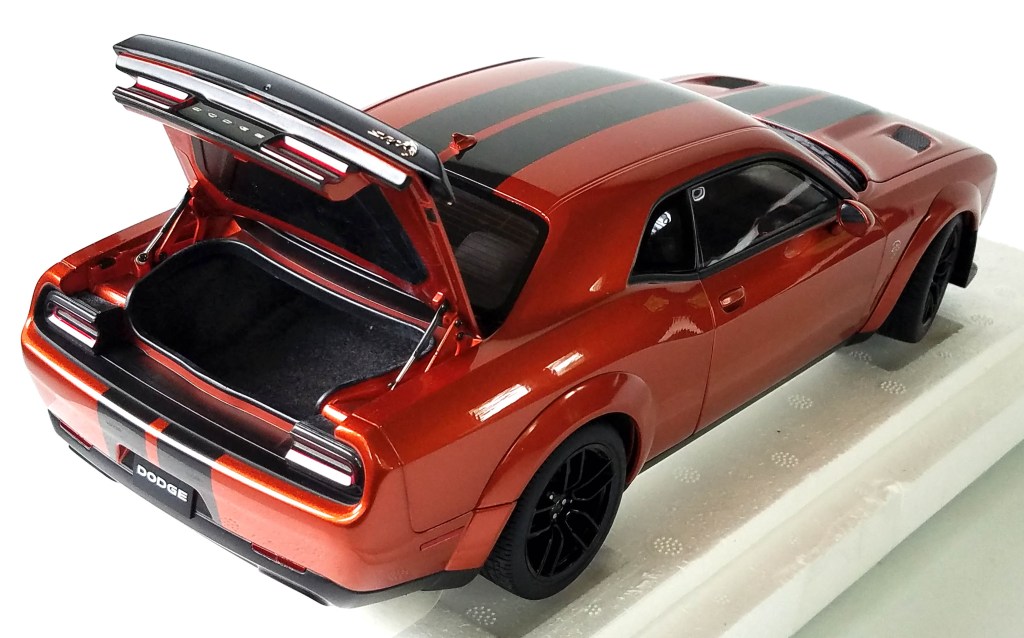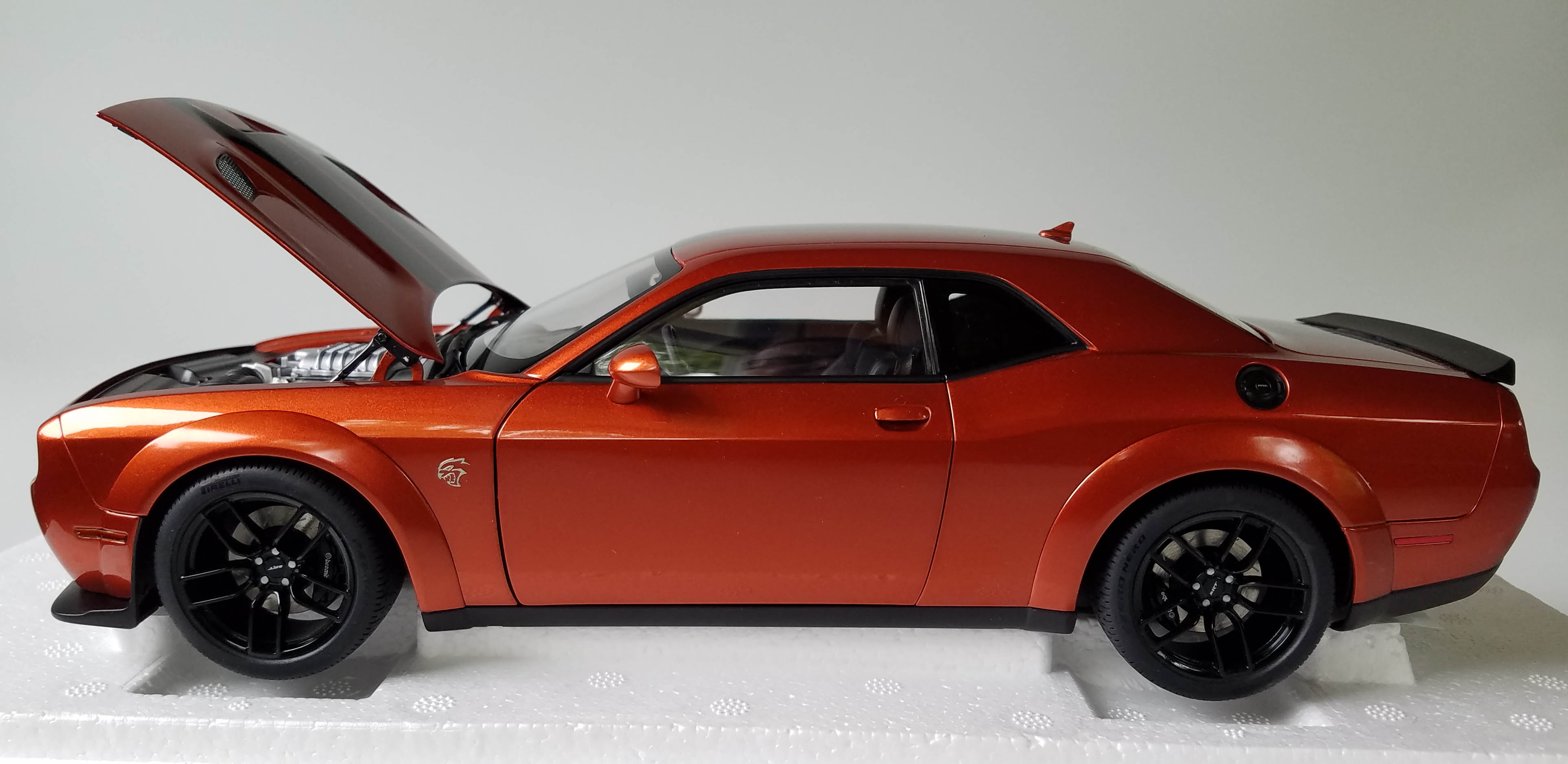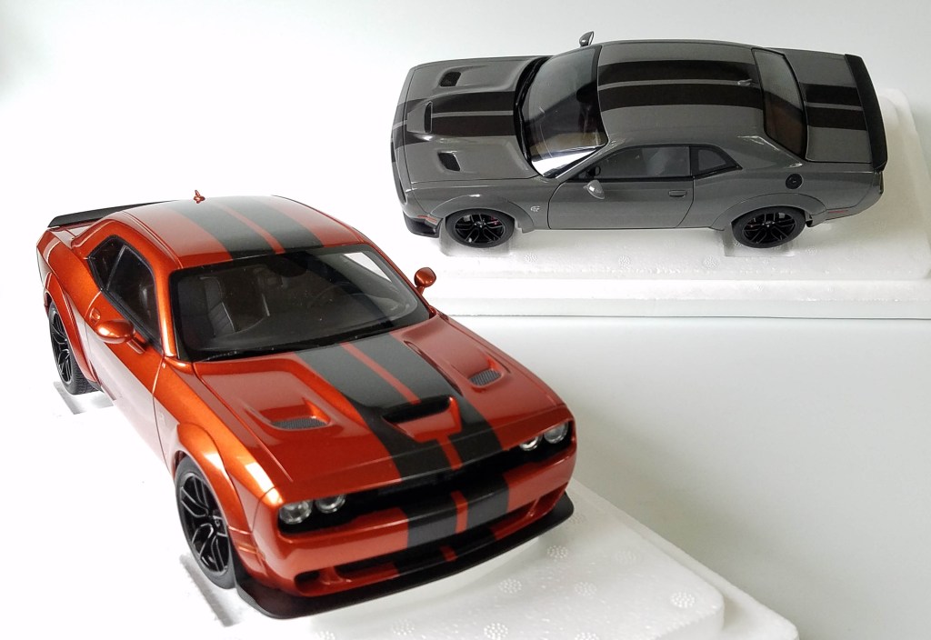 Combine the two, as Autoart has on four new models, and the Challenger SRT Hellcat Widebody oozes with muscle car goodness that could easily be the star of any 1/18 scale collection, depending on color. I say that because three of these are bright and fun, the other a low-key Destroyer Gray.