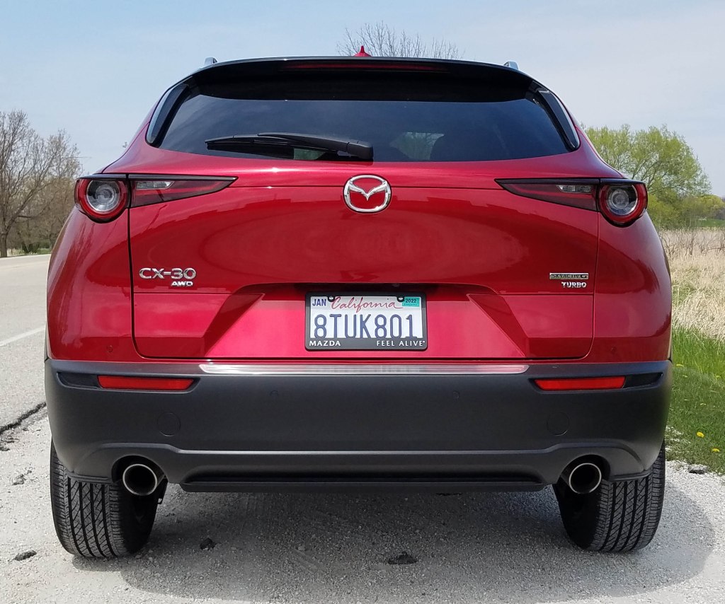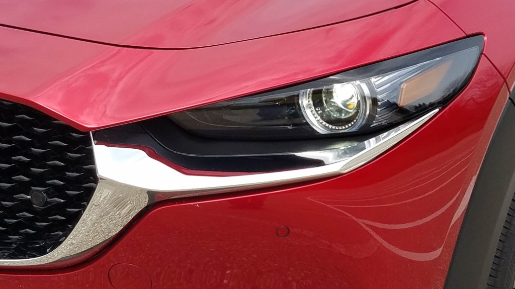 CX-30’s styling is leading edge, it’s noteworthy, it’s spectacular. The beak of the hood gives this crossover a nose to remember. Reminds me of the racy beak on 1960s and 1970s Eagle Indycar racers. The slits for headlights are equally appealing and the taillights also make a styling statement.