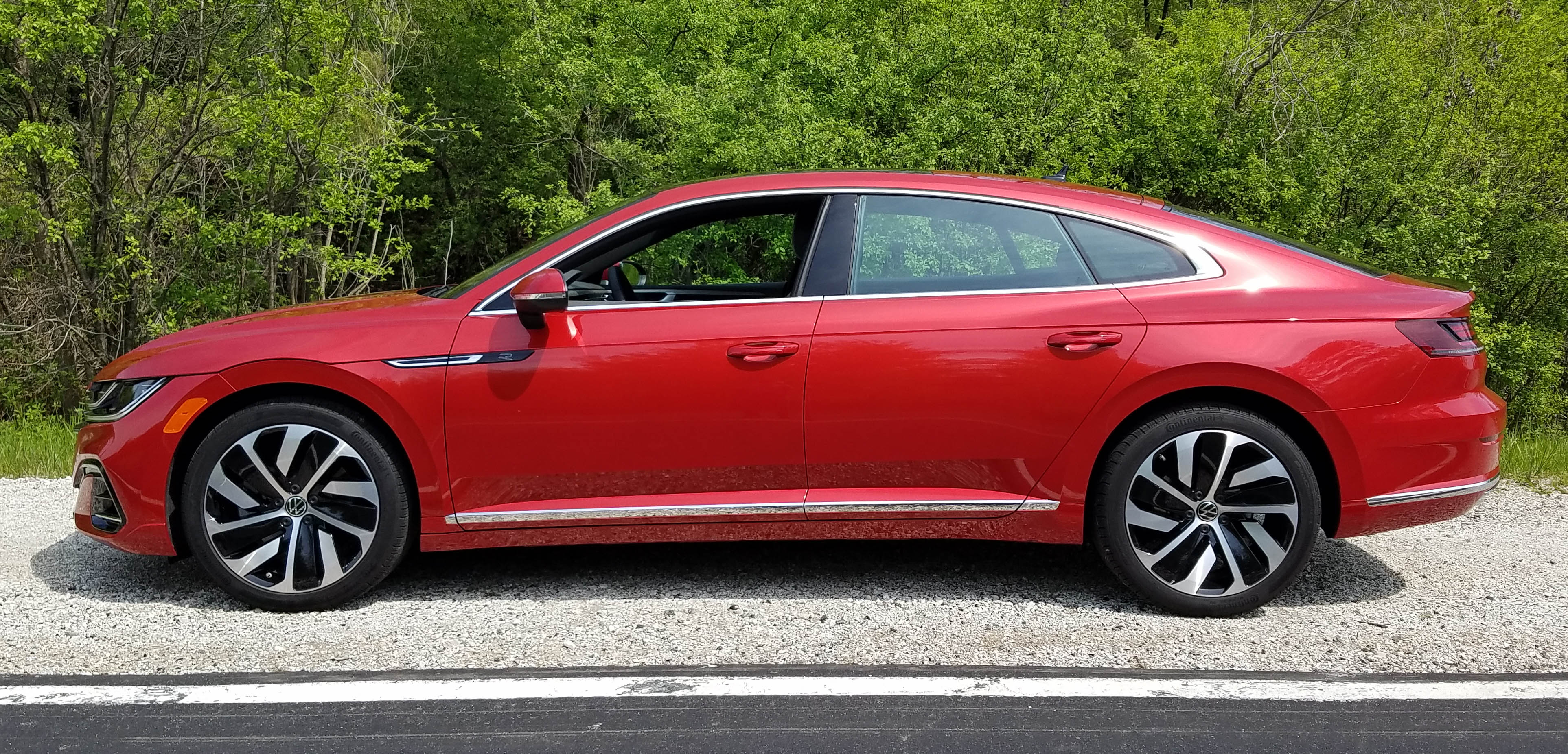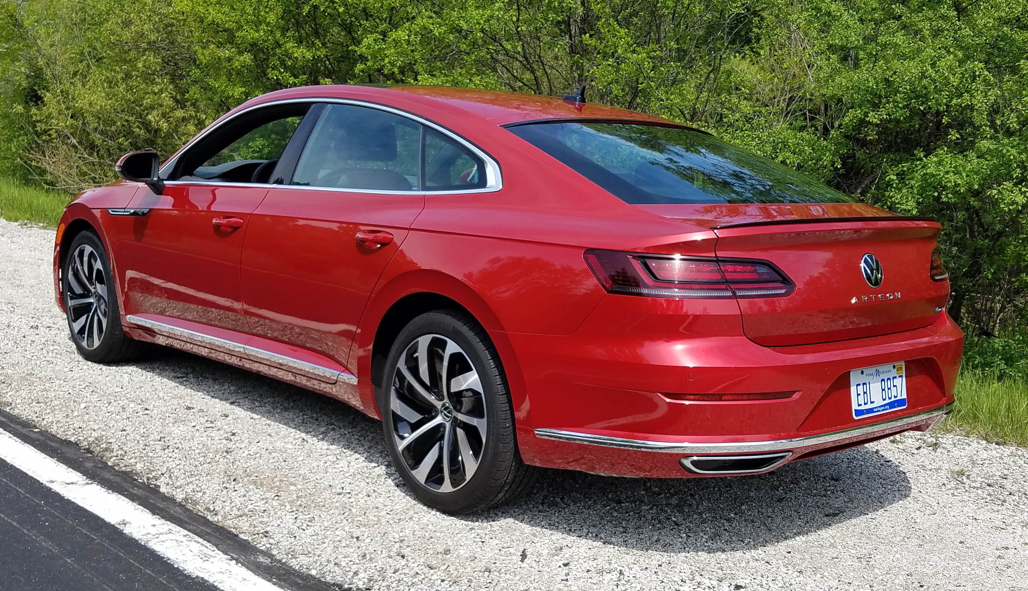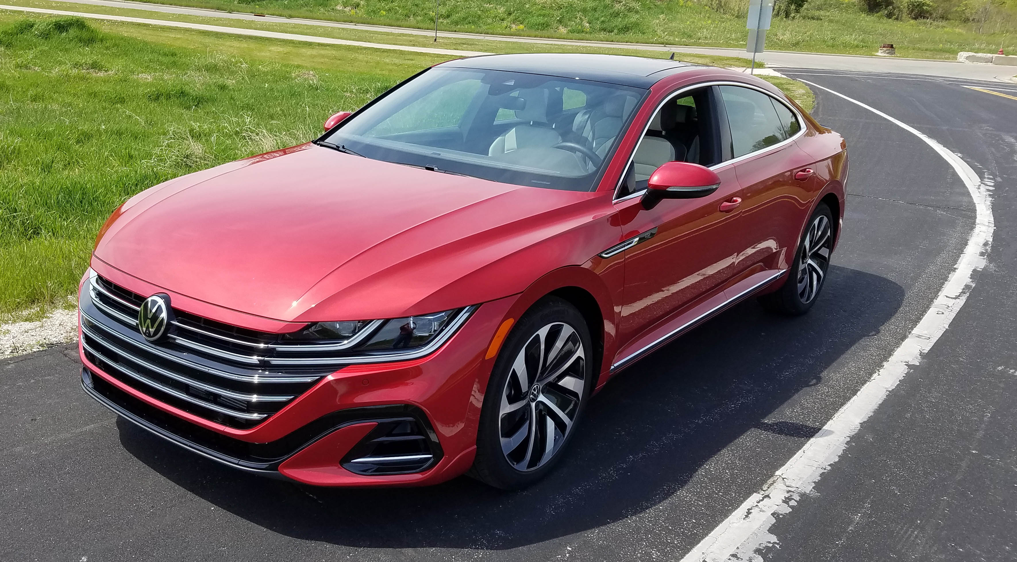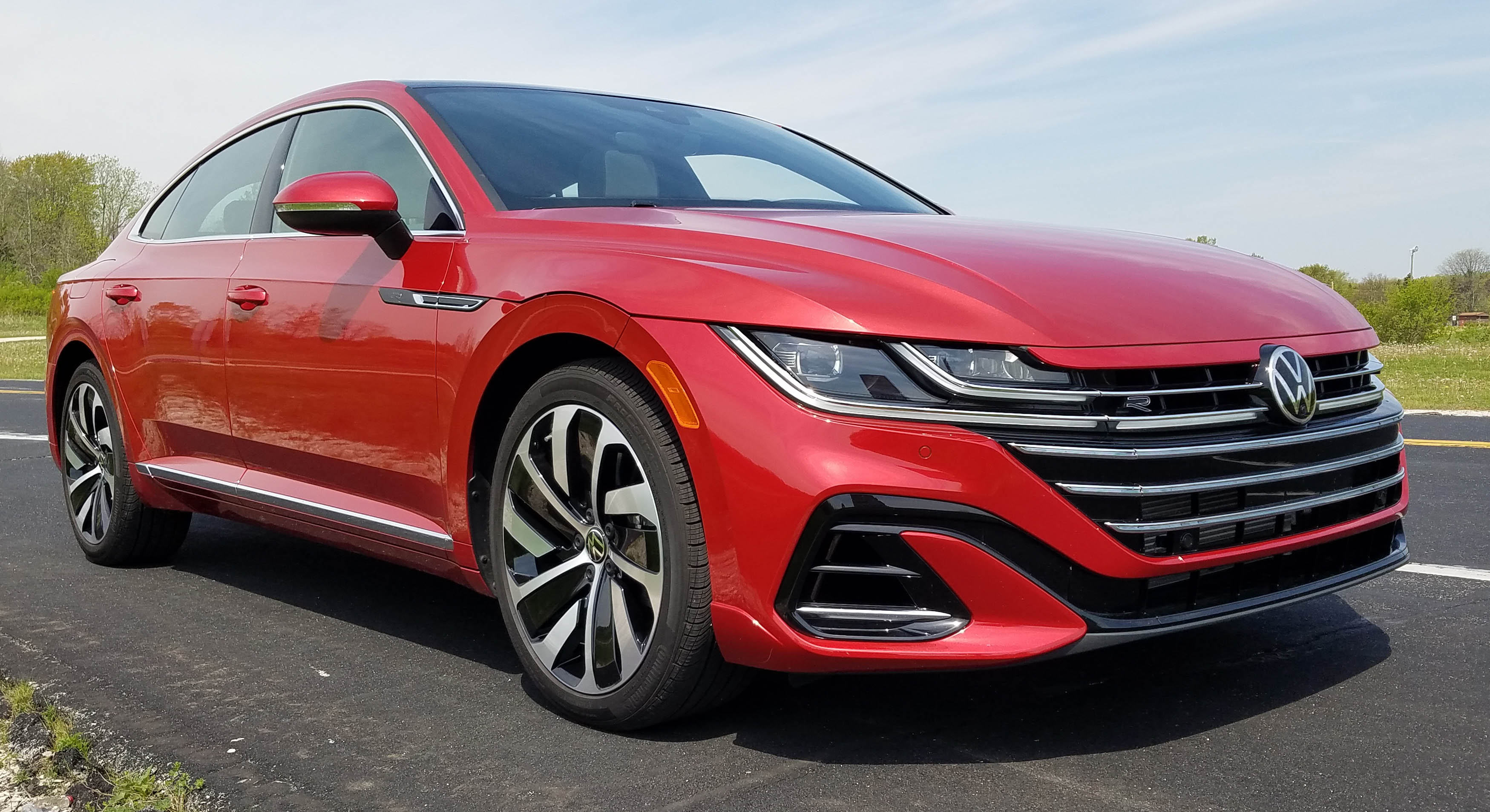 Good news on the pricing front too as a base Arteon SE starts at $38,190. It’s front-wheel drive. An SEL R-Line lists at $42,790 and one with AWD like the test car begins at $44,590. This one just added the sharp red paint job to end up at $44,985. Standard on the R-Line are 19-inch tires, the Nappa leather seats, sunroof, smart cruise control and adaptive LED headlights.
