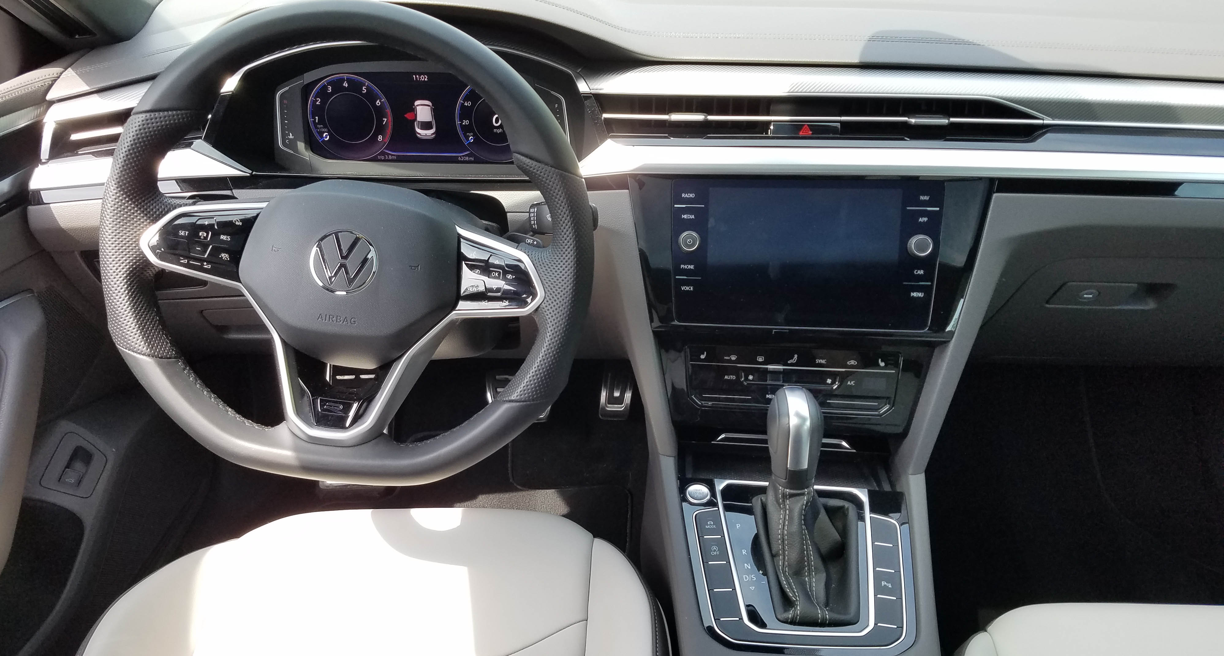 Arteon also comes with dual climate controls, but VW has gone to touch-controlled slides that are a bit too touchy at times, likewise there’s a radio volume slide on the steering wheel’s hub. Not sure why knobs needed to be replaced, but as with all touch-centric controls these are not easy to use when the car is in motion as their adjustment is imprecise.