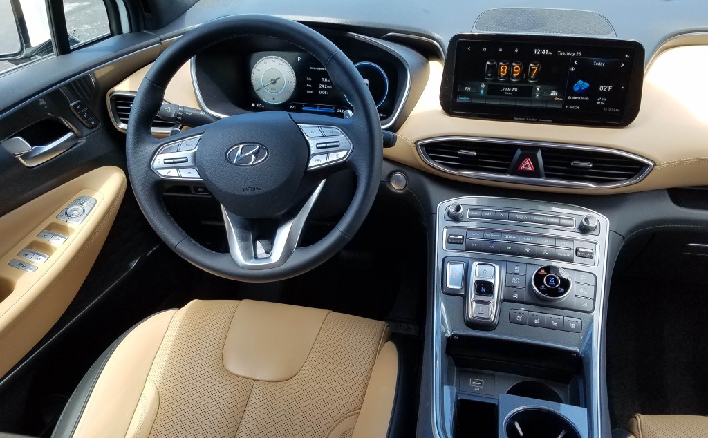 For 2021 Hyundai ditched its old engines and goes with two new ones, plus offers a hybrid and soon a plug-in hybrid. The base engine is a 191-horse 2.5-liter I4. That’s 6 more horses than the old one. While the upscale 2.5-liter I4 turbo found in Calligraphy belts out 277 horses and touts a 311 torque rating. Car and Driver magazine says the Santa Fe with this engine will do 0 to 60 mph in 6.0 seconds with a top speed of 130 mph, not bad for a large mid-size ute.