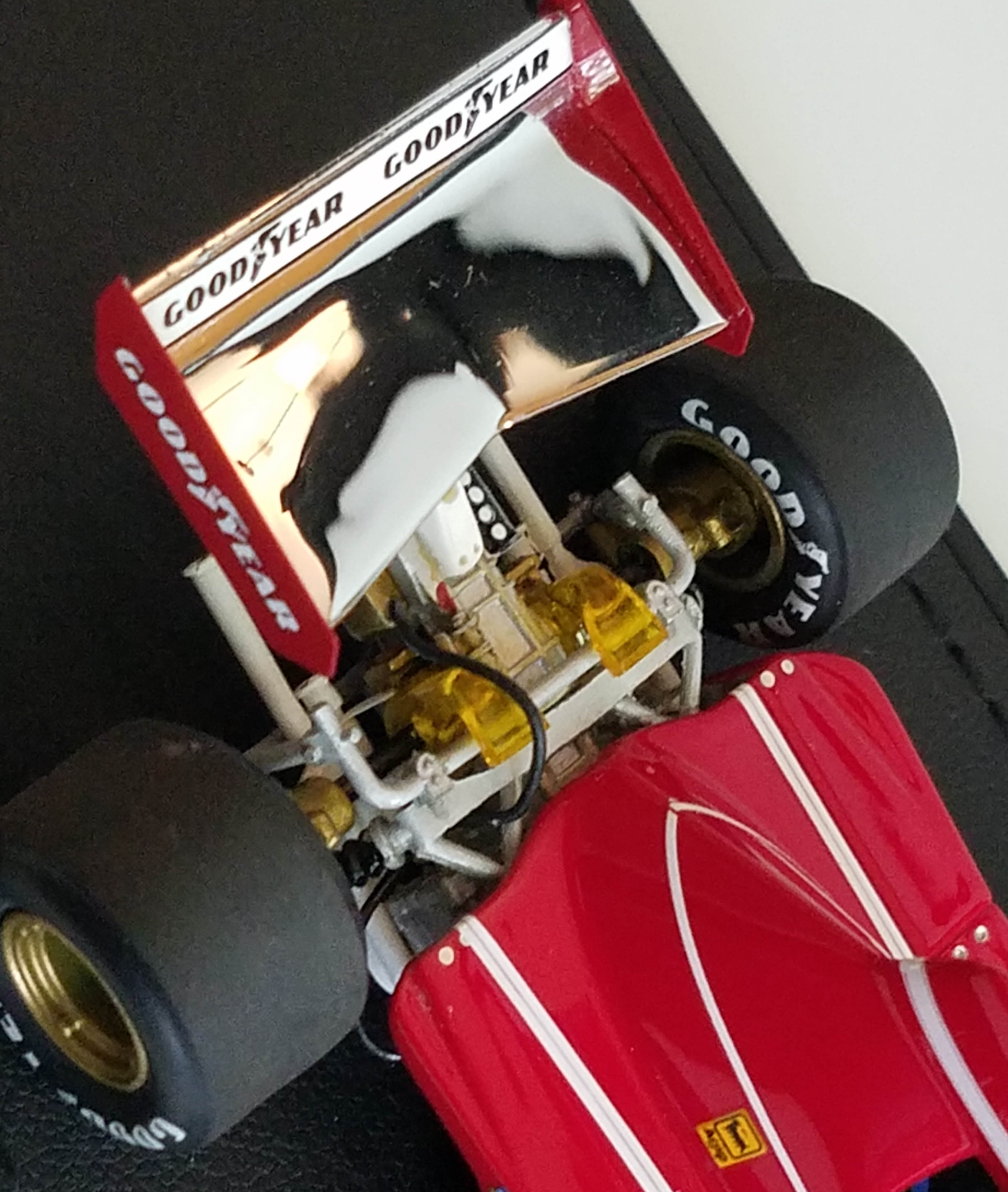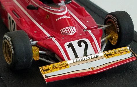 The B3’s body shape and Ferrari Red paint job are stellar. Its wings are well-shaped and the chrome finish is fine as are all the decals/logos, mainly Goodyear and Agip at the time as cars weren’t rolling billboards just yet.