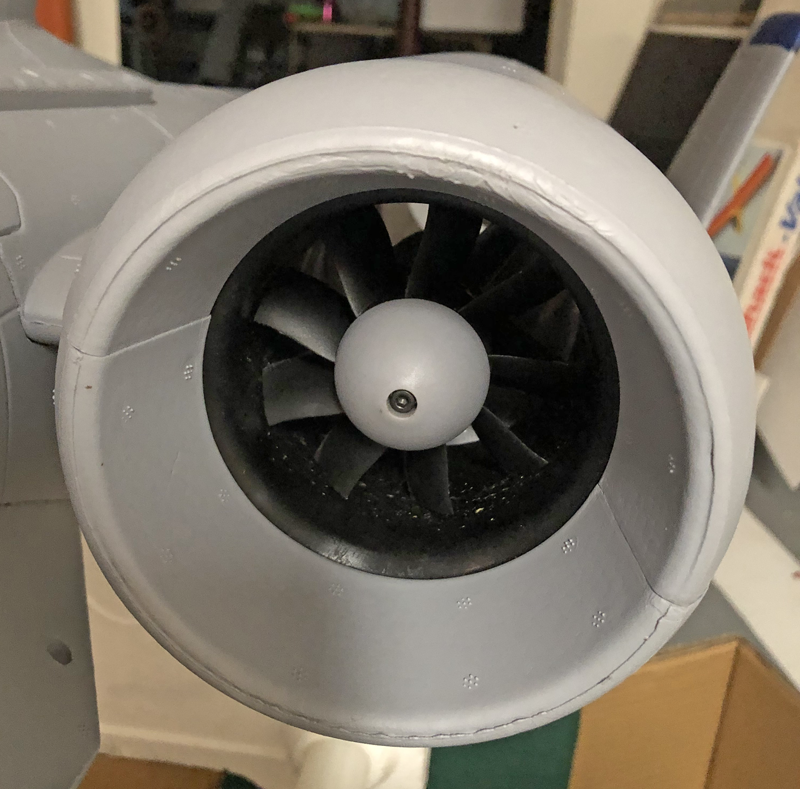 My radio control model is a large one, an 80-inch wingspan, the fuselage is 74 inches long and it weighs just 14 pounds. It’s powered by four electric ducted fans and requires four Li-Po batteries. Efficiency in the build was critical here and with a combination of balsa, ply carbon fiber, and foam it has a 14-1 thrust ratio.
