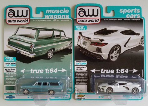 For collectors, the good news is that Auto World allows us to enjoy both these models for next to nothing, just $7.99 a pop with its True 1:64 Sports Cars and Muscle Wagons series. Here’s my take, and these are both new castings from AW.