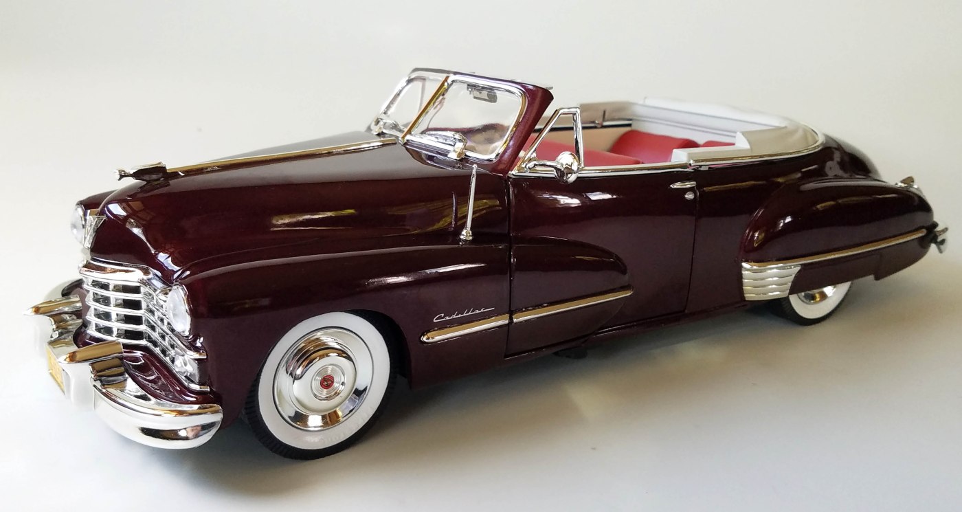 AW models the 1947 Caddy with its Monobloc flathead 5.7-liter V8, which made 150 horsepower. The chrome fender guards and 5-bar grille were new styling cues for 1947 as GM tried to freshen its lineup that essentially reflected 1942 styling. Oh, and the hub caps were known as Sombrero wheel covers. Ah, marketing!