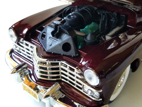 Know too there is a detailed undercarriage with single exhaust system and solid axle rear suspension. If you pose this on a base with mirrored bottom a viewer can see some of that. Wheels also highlight those big Sombrero wheel covers and wide white-sidewall tires.