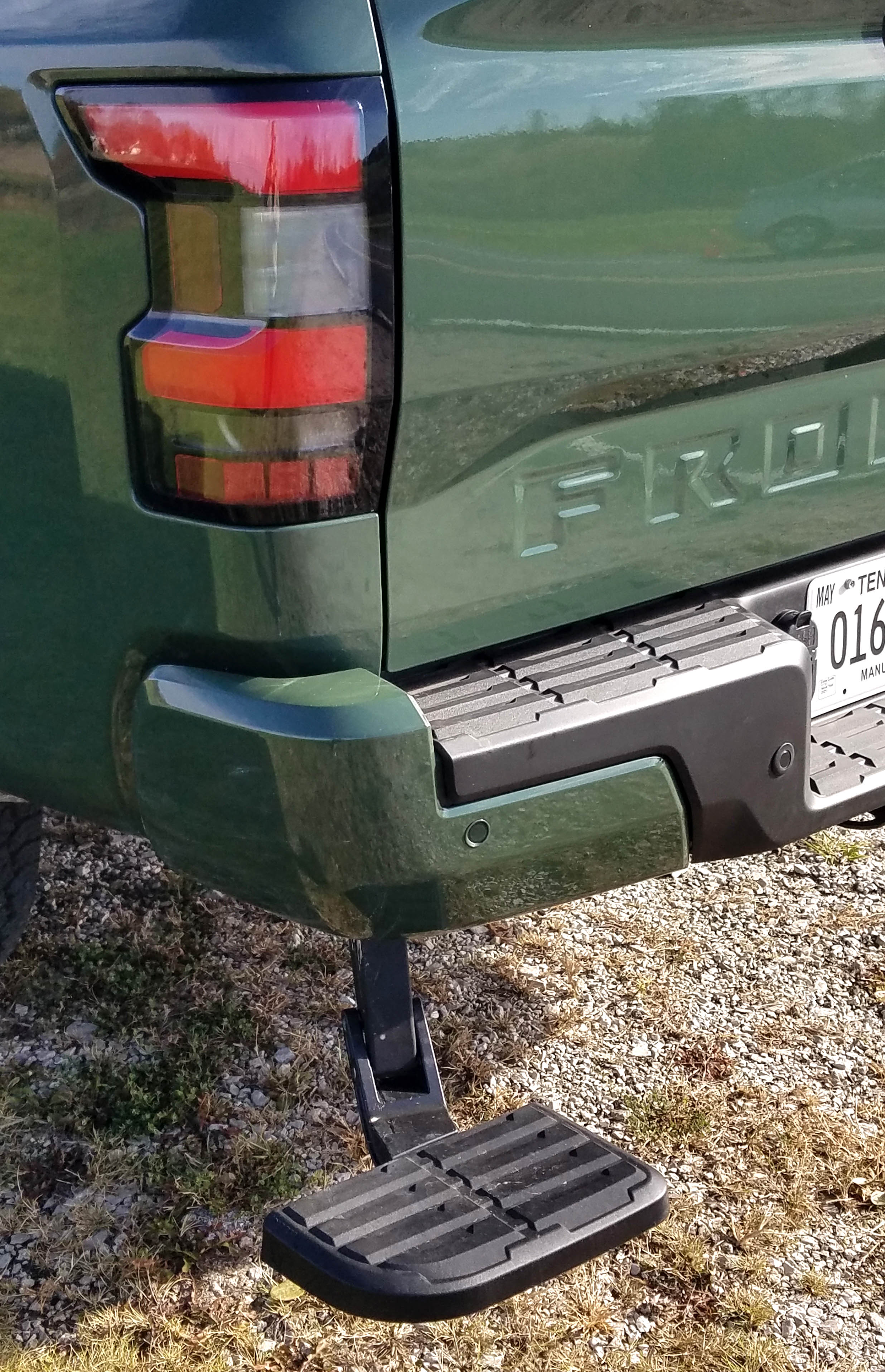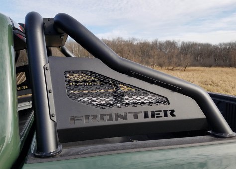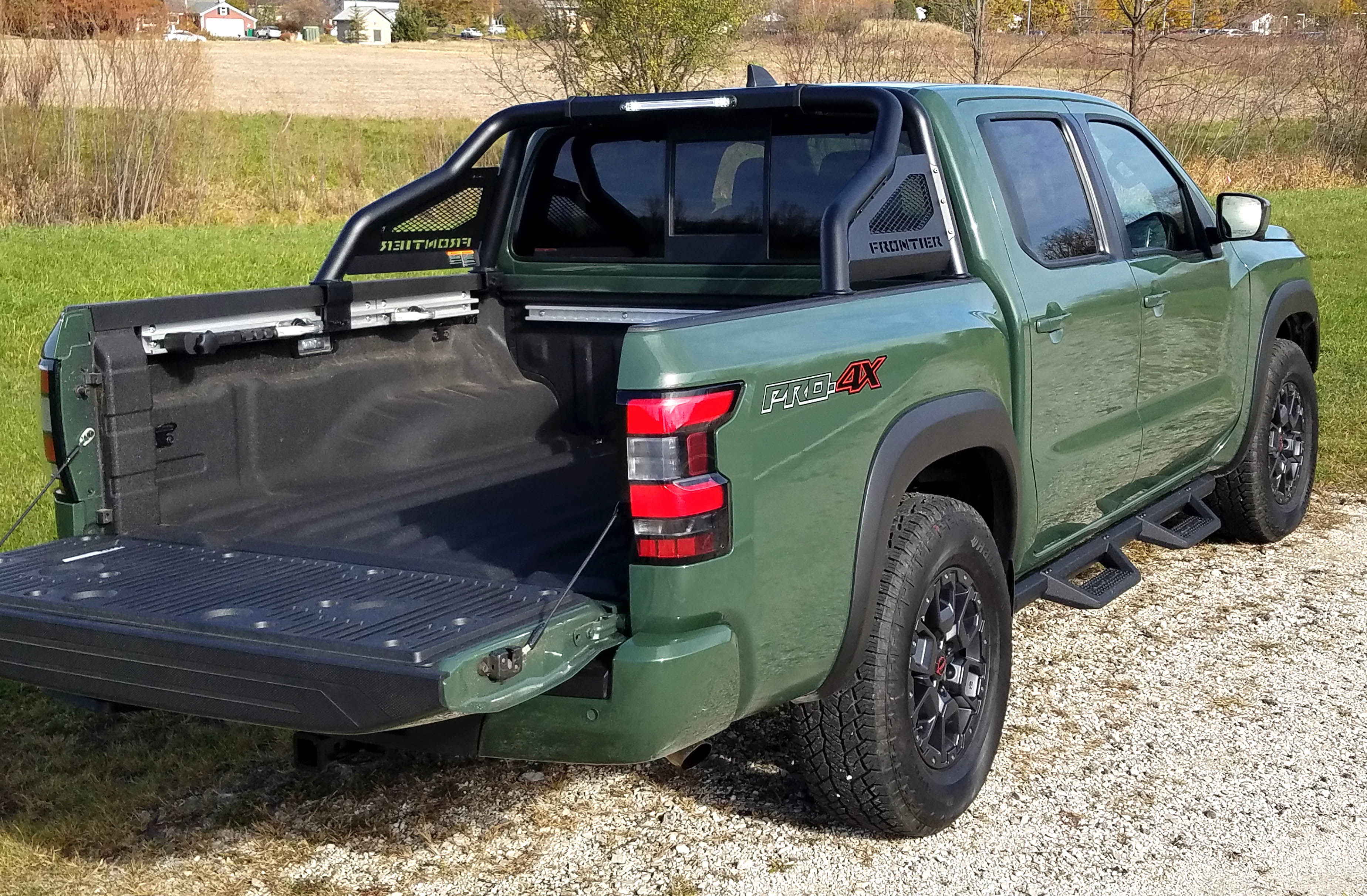 This one did add a grizzly bear-strong Sport Bar ($1,095) just behind the cab. It adds off-roading panache, but also includes a light on top to make bed loading easier at night. Nissan also includes side bed lights here. And while I loved Hyundai’s bumper infused steps this has a fold-down step on the driver’s side tail below the bumper. It’s easy to fold down and flip back up.