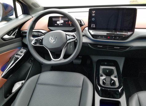 The VW features better ride than Mach-E despite a considerably shorter 108.9-inch wheelbase. Handling is good, but only sporty in the Sport drive mode, one of five. Acceleration is smooth and quiet (some electric whine, naturally), but not rocket ship fast, just quick.