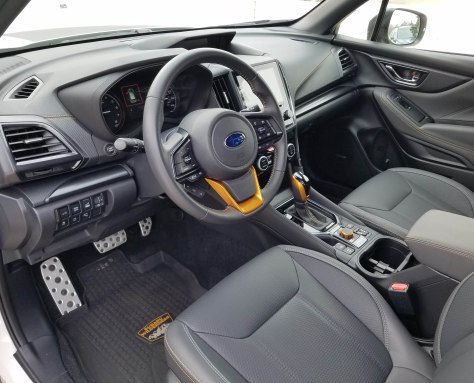 Inside, Forester is comfy with supportive seats, a fine dash layout and Wilderness gets snazzy brushed aluminum pedals.
