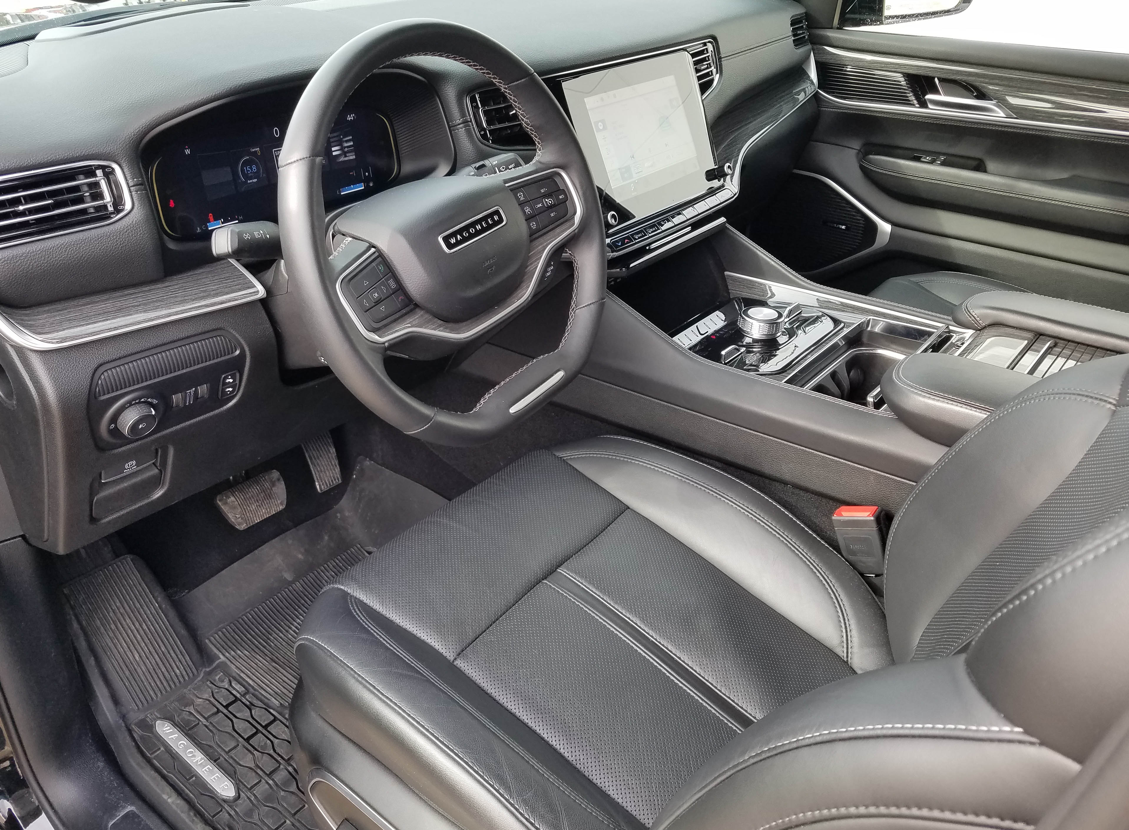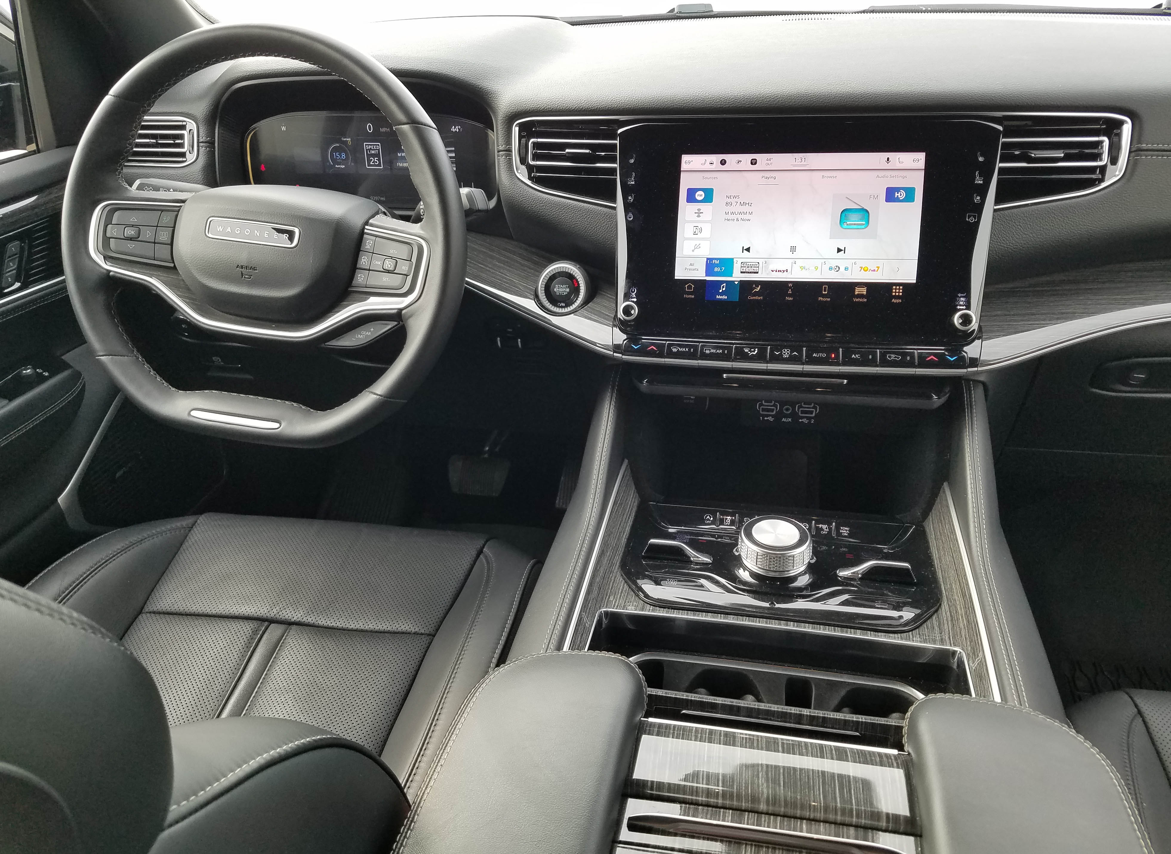 Off-road ability is good. Wagoneer will ford 2 feet of water, but it’s not Trail-Rated, at least yet. There are five traction settings adjusted by a toggle on the console. Those include Auto, which is the default, Sport (in a Jeep?), Sand/Mud, Rock, and Snow.