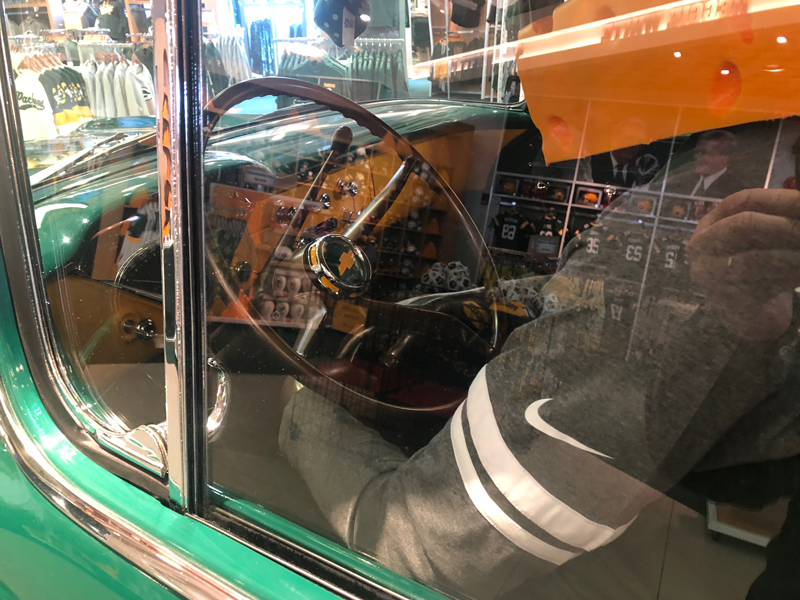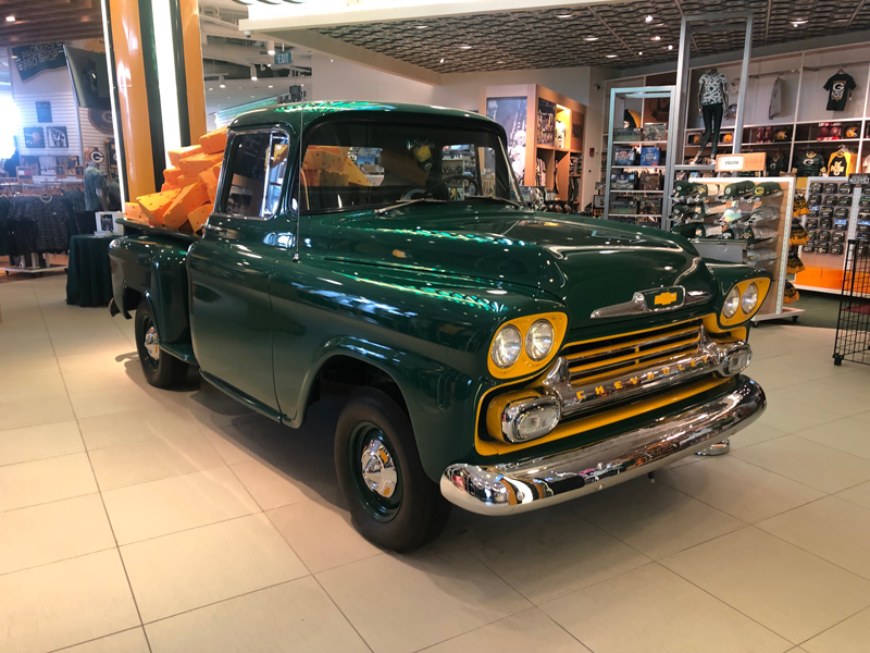 This pickup was fully restored by a local car dealer donated to the Hall of Fame. It’s a 1958 3100 pickup that rolled off the assembly line in Baltimore, MD equipped with a 235 cubic inch 6 and puts out 145 hp. In the day that was pretty good. As a tribute to the team, it is dressed in Polar Green. Go Pack Go!