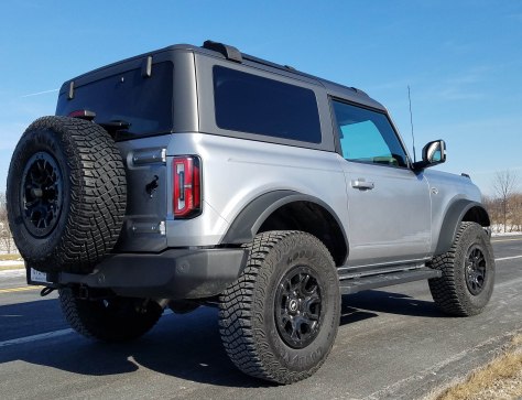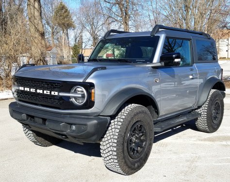 The tested Iconic Silver 2-door Advanced model with Wildtrak package clears the ground by 8.4 inches and boasts a 2.7-liter EcoBoost turbo V6 creating 330 horses and a torque rating of 415. That makes this the top-end big Bronco and its price matches all that muscle, starting at $48,475, with delivery. Options brought it to $53,650.